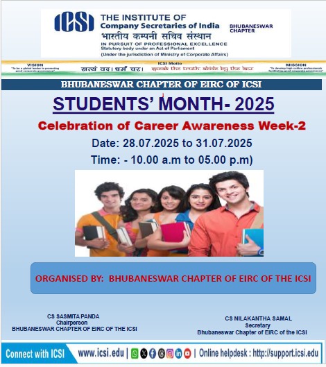 - Bhubaneswar Chapter Organizing- Career Awareness Week-2 on 28th July,2025 to 31st July, 2025.