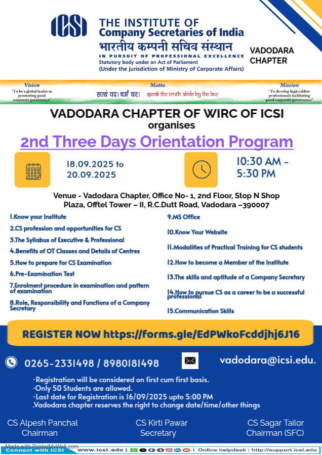 Vadodara Chapter organizes 2nd Three Days Orientation Program from 18.09.2025 to 20.09.2025