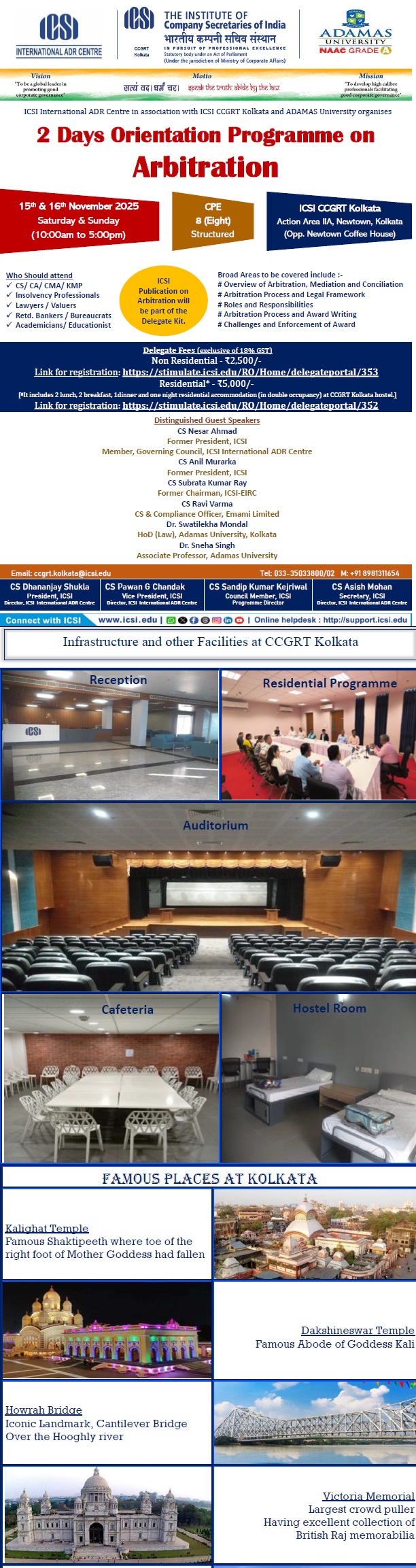 CCGRT Kolkata announces 2 Days Workshop on Arbitration