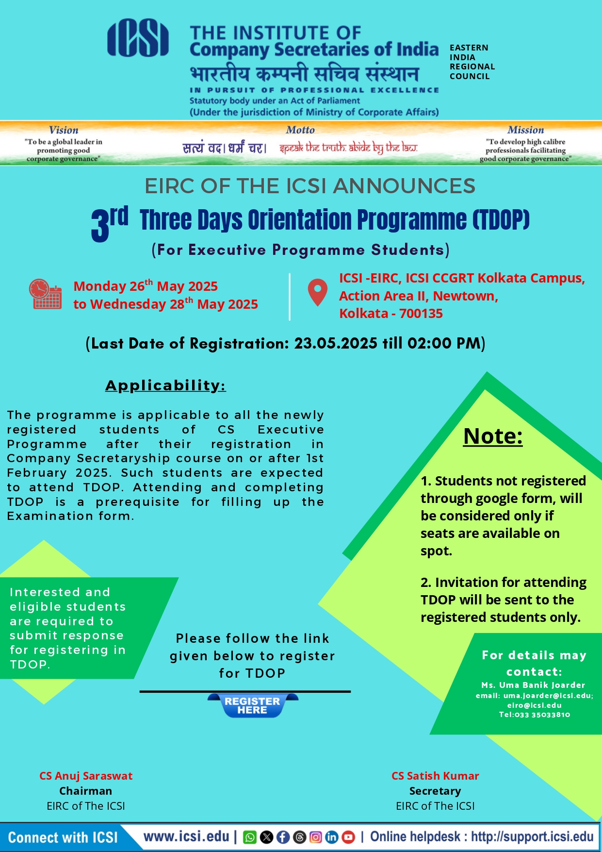 EIRC: 3rd Three Days Orientation Programme (TDOP) for CS Executive Students