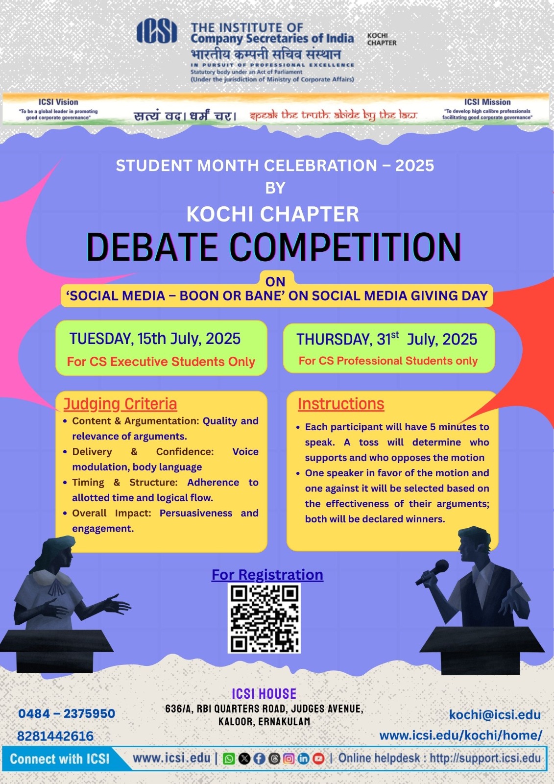Institute of Company Secretaries of India- Kochi Chapter ICSI House ,636/A, Judges Avenue, RBI Quarters Rd, behind Indian Express, Kaloor, Kochi, Kerala 682017