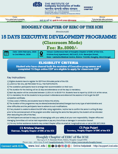HOOGHLY CHAPTER'S 15 DAYS CLASS ROOM EXECUTIVE DEVELOPMENT PROGRAM