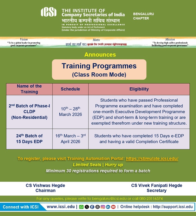 Bengaluru Chapter_15 days CLDP in Classroom Mode (Phase-I)