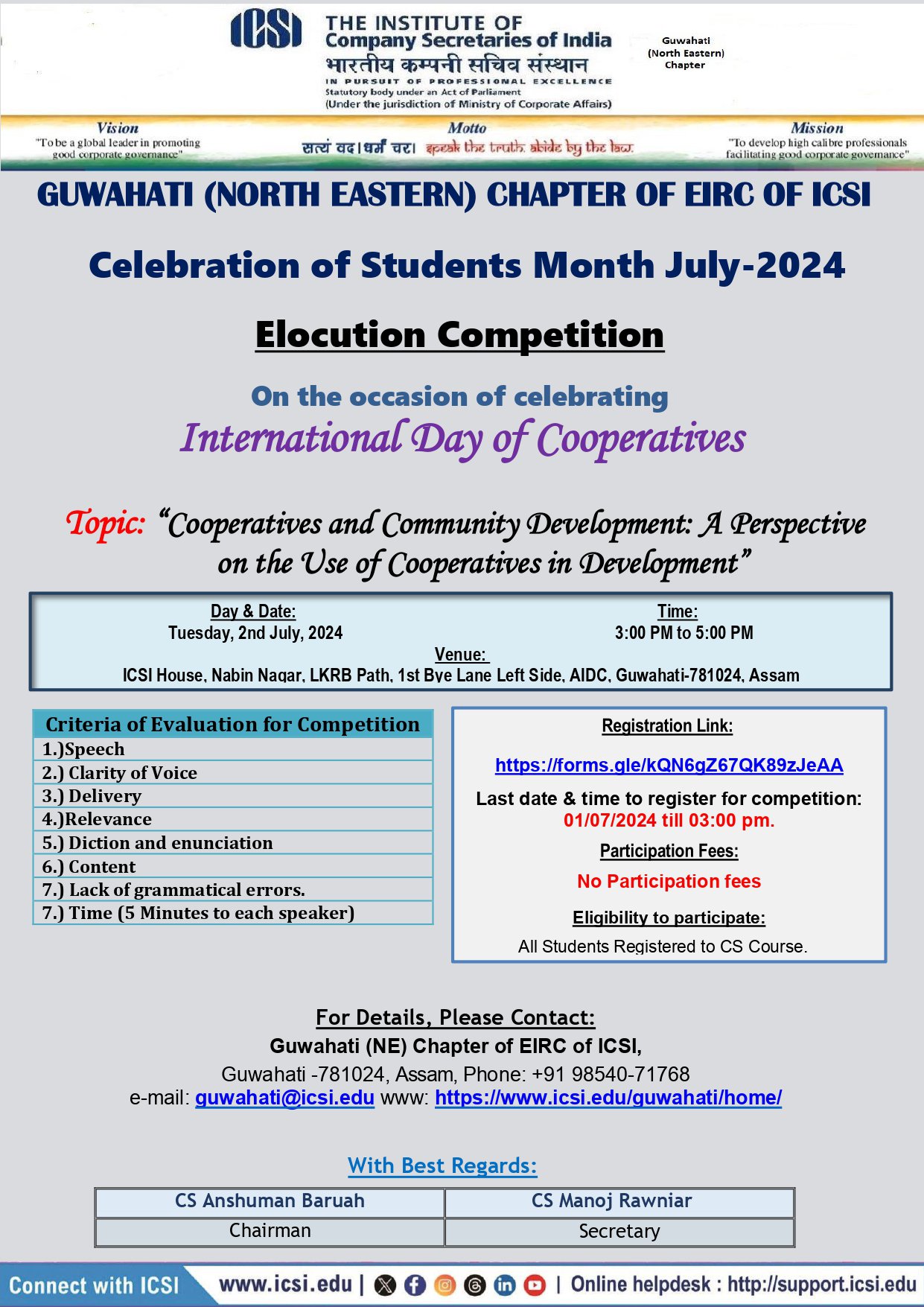 The Guwahati (North Eastern) Chapter of EIRC of The ICSI Announcement