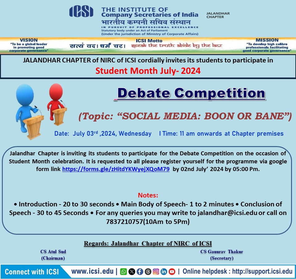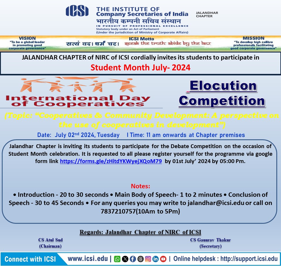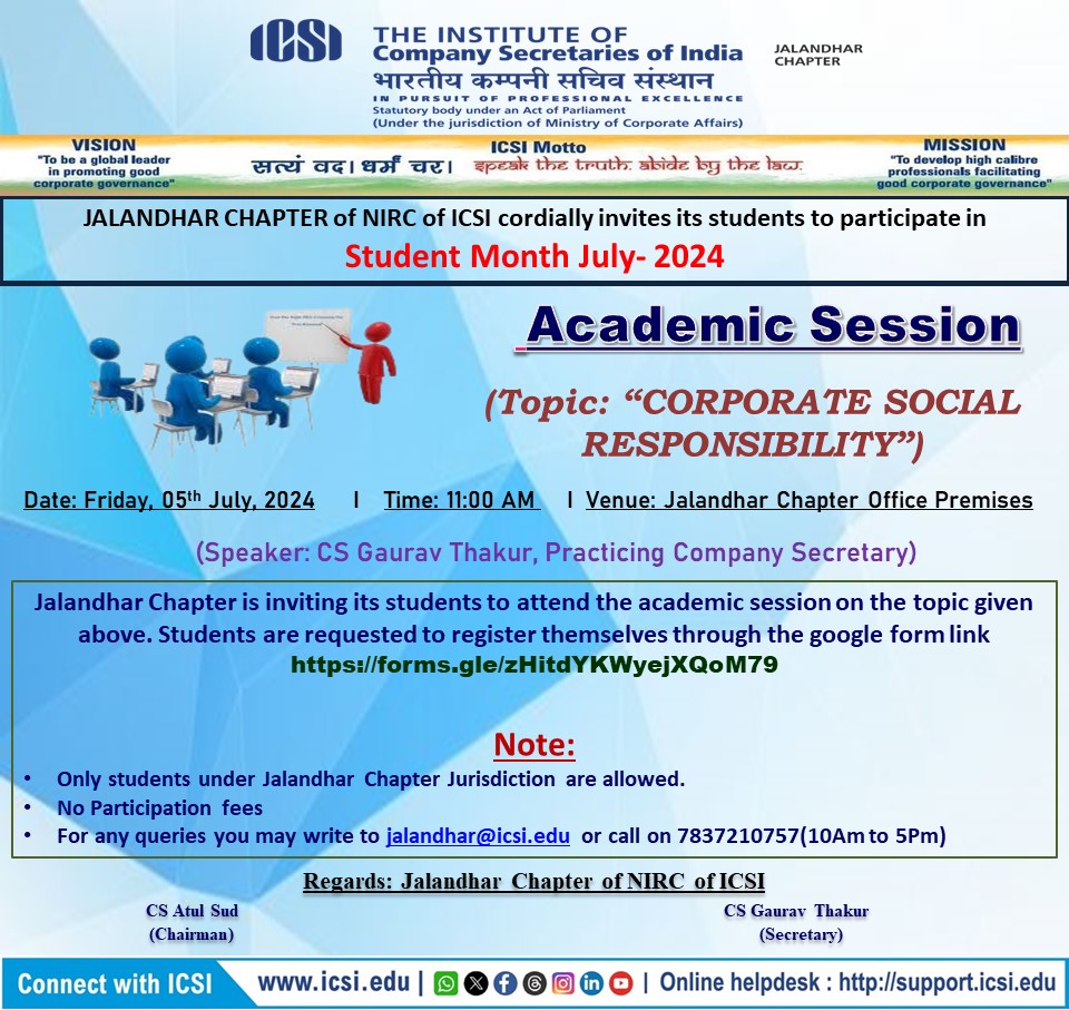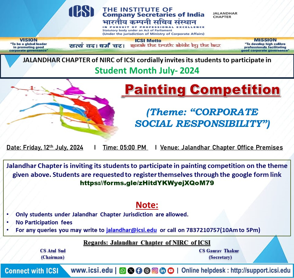 # ICSI Jalandhar Chapter Announces Student Month, July- 2023 Celebration