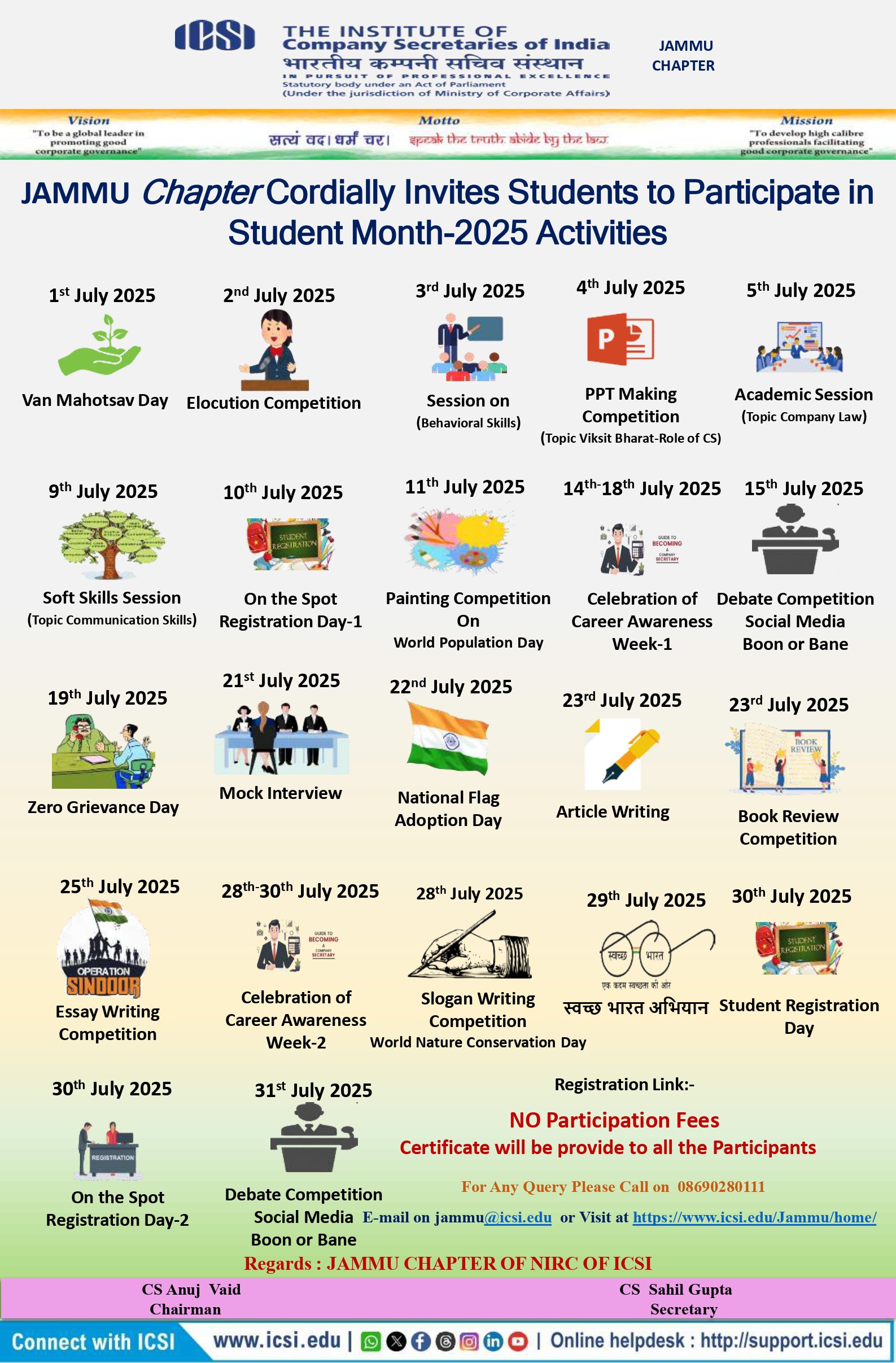 STUDENT MONTH JULY 2023 CELEBRATIONS BY JAMMU CHAPTER OF NIRC OF ICSI