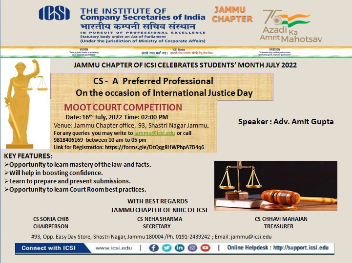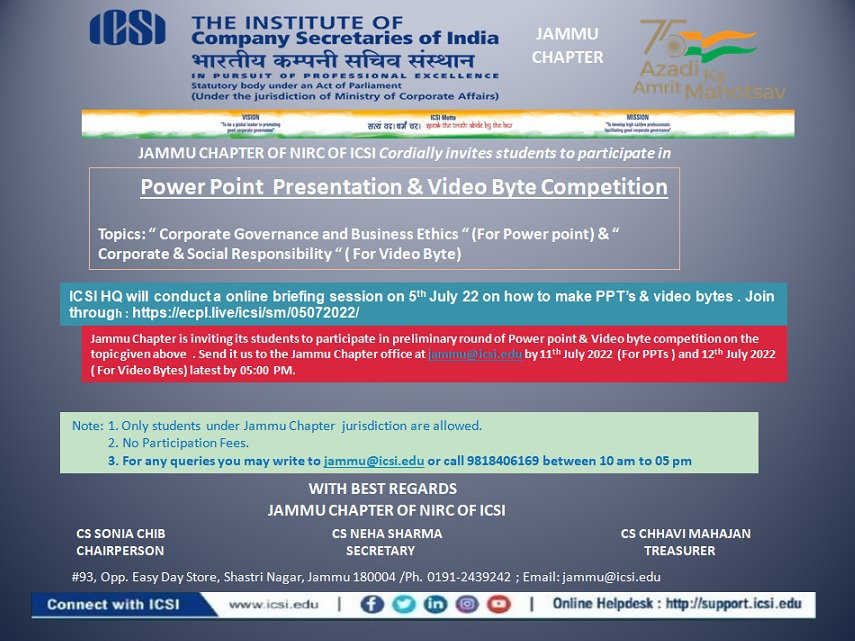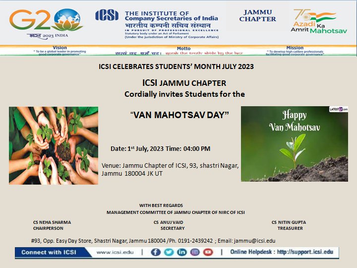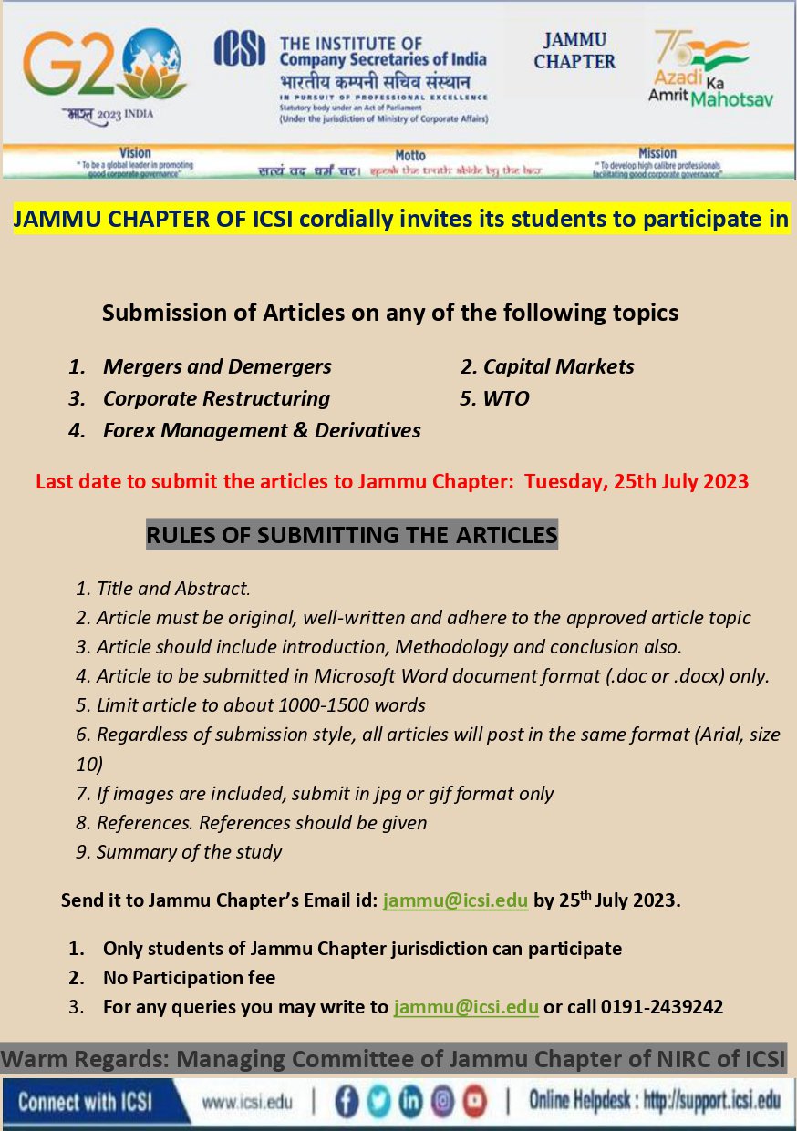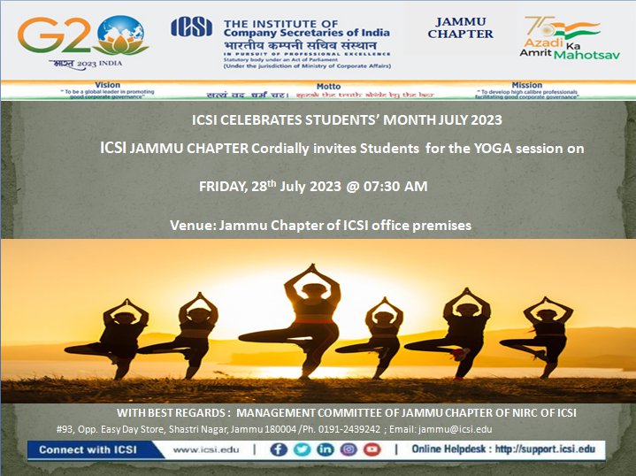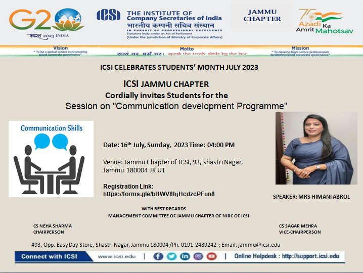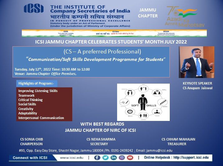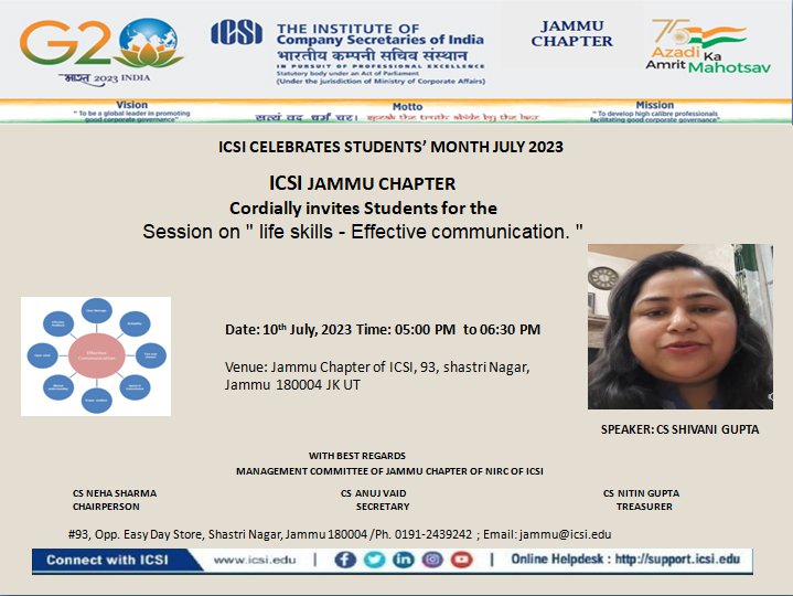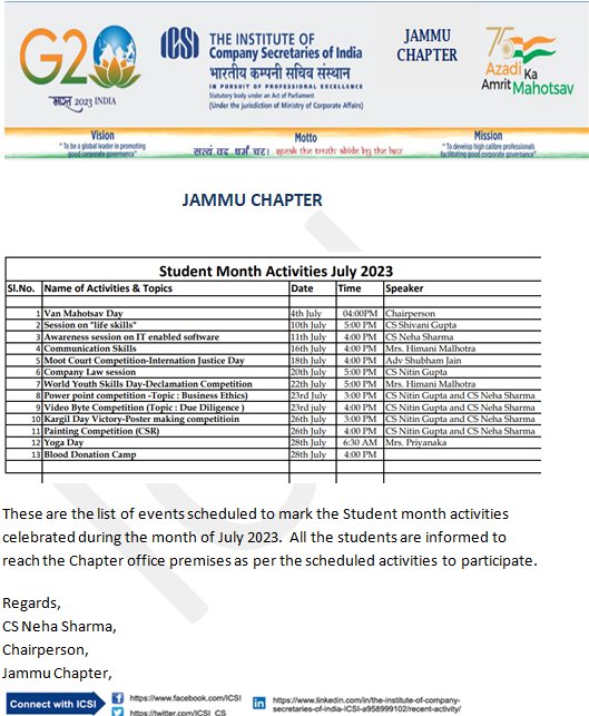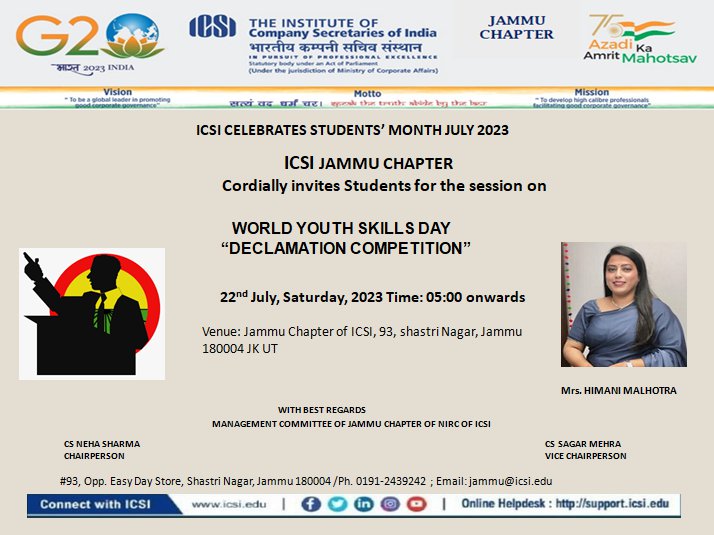 STUDENT MONTH JULY 2023 CELEBRATIONS BY JAMMU CHAPTER OF NIRC OF ICSI