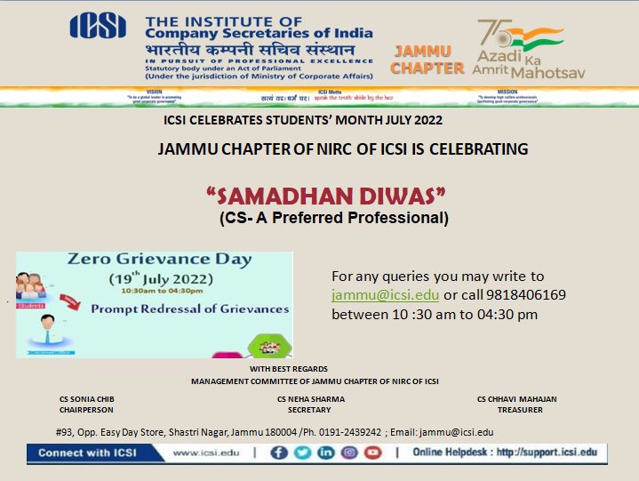 12. ICSI JAMMU CHAPTER OBSERVED ZERO GRIEVANCE DAY ON 19.7.2022