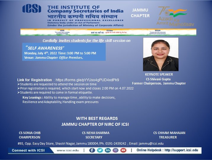 3. Session on Life Skills: Self -Awareness by CS Shivani Gupta on 4th July 2022