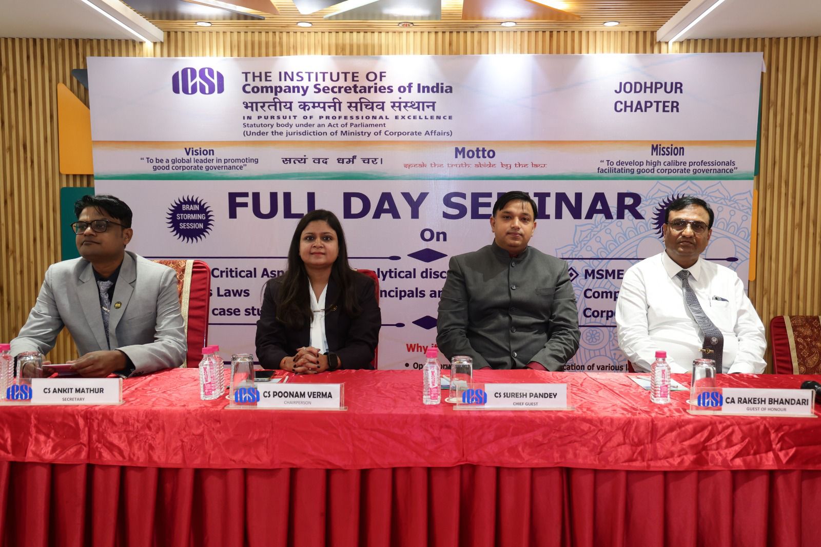 Jodhpur Chapter is an B” category Chapter of the ICSI. Jodhpur Chapter Since its incorporation continuously achieving new heights and effectively serving the stake holders i.e. Members, Students, and Government Sector and is committed to serve the profession of Company Secretaries with full vigour.