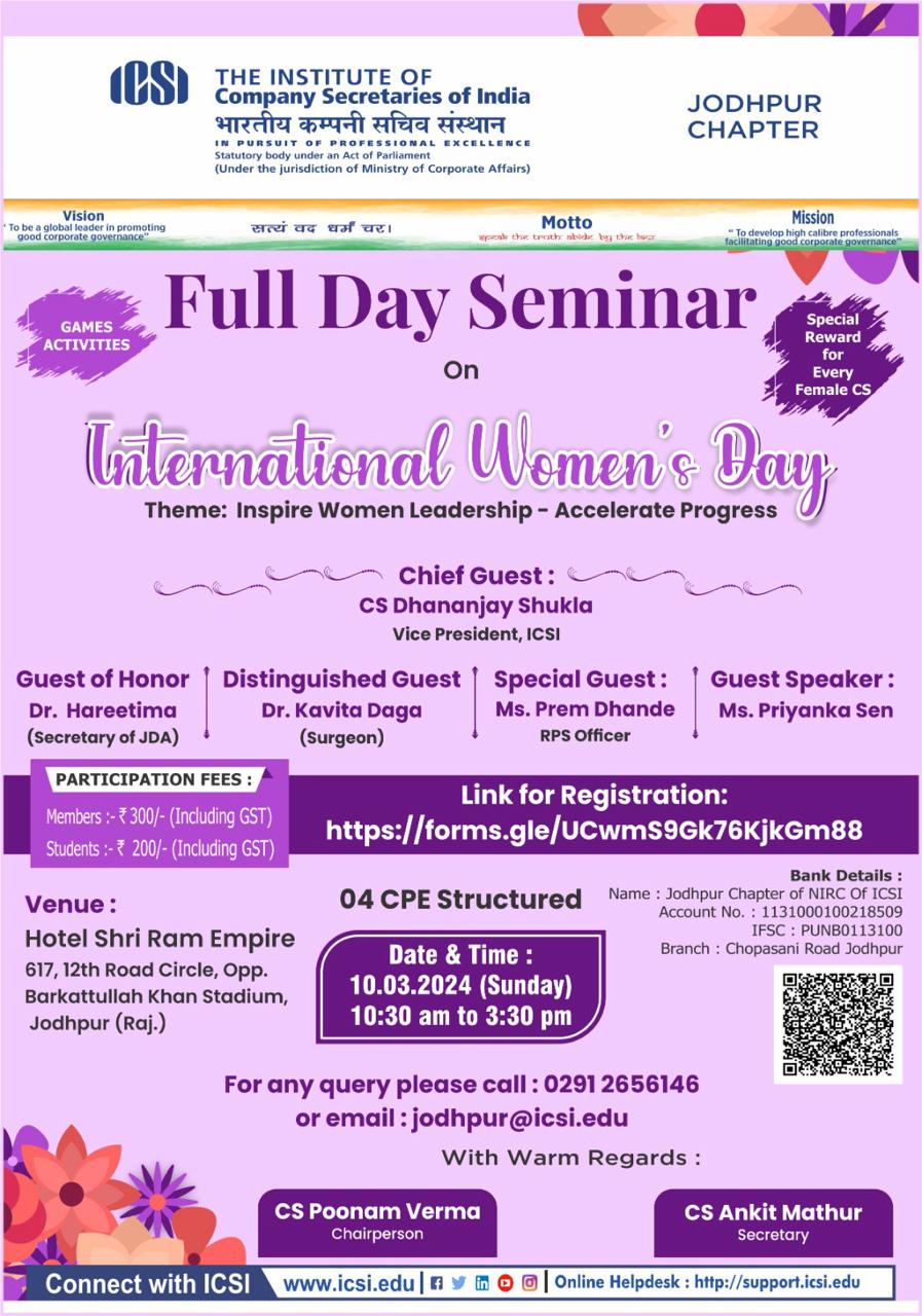 Jodhpur Chapter of NIRC of ICSI celebrates "Students Month 2024"