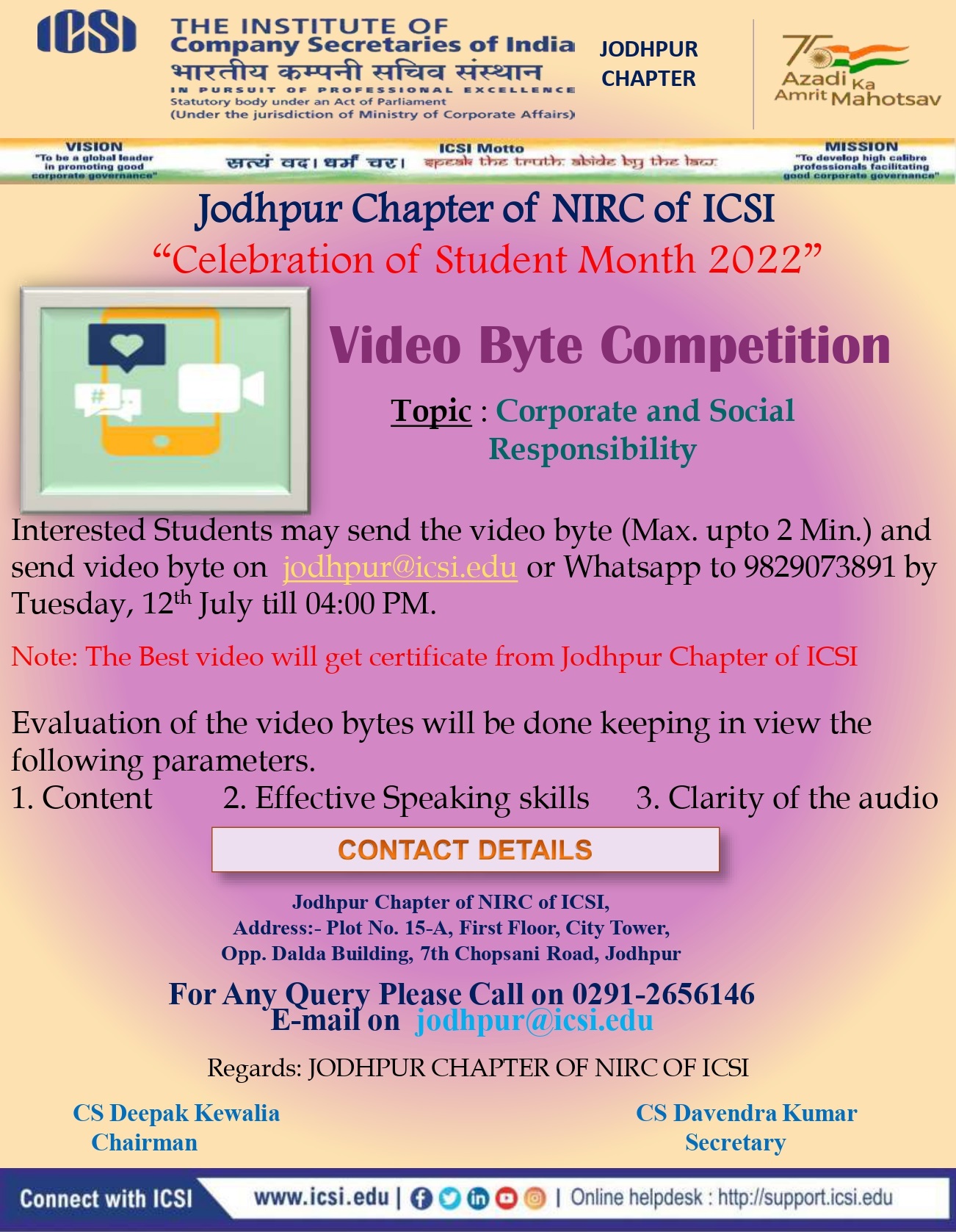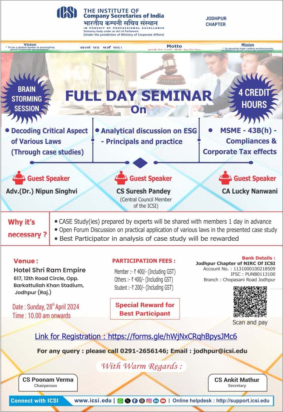 About Jodhpur Chapter ( Silver Grade Chapter of NIRC of ICSI)