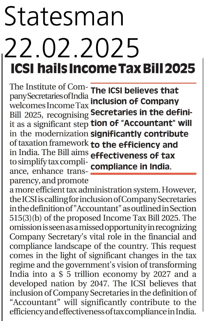 Inclusion of CS as Accountant in Income Tax Bill 2025