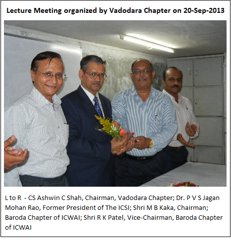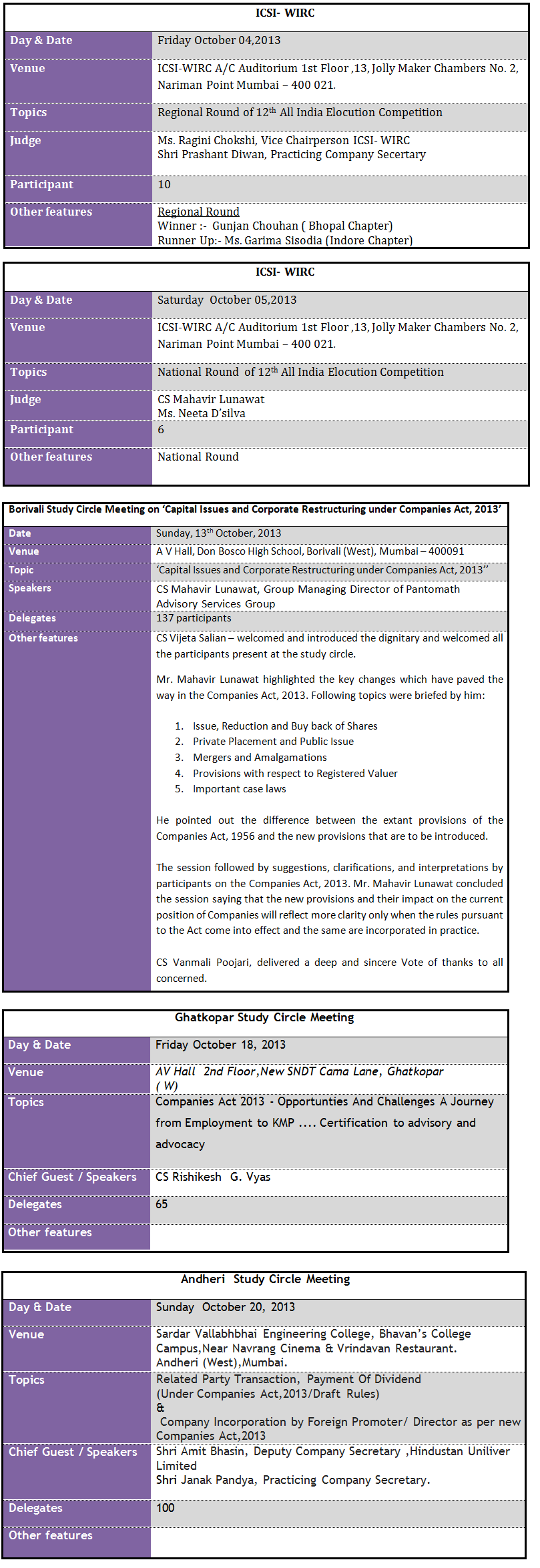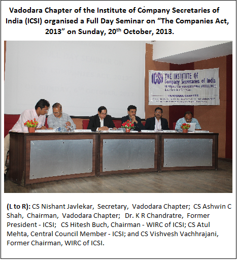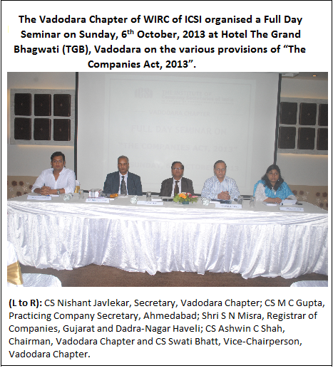 The period between September - October 2013 witnessed various programs at ICSI- WIRC and at various Chapters in the Region. The response of the members in programs conducted on the Companies Act, 2013 was overwhelming as imminent from the attendance at the programs.
