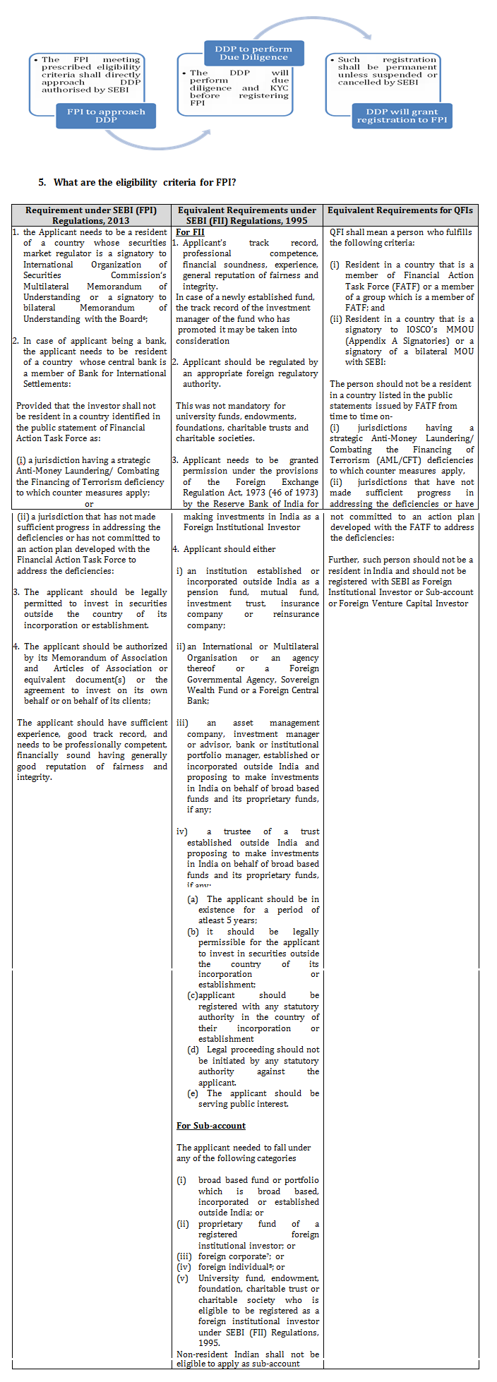 Earlier the FII, QFI and Sub Accounts had their own set of regulations to be qualified as FII, QFI and Sub Accounts. However with