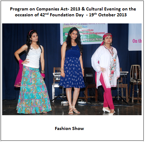 The cultural evening was the outcome of a month long tiring efforts of CS Ajay Kumar and CS Karande, Practising Company Secretaries and their team which was enriching, entertaining and enjoying moments for the members. During the cultural evening other members and students also voluntarily took part in various activities including a play, singing and fashion show.