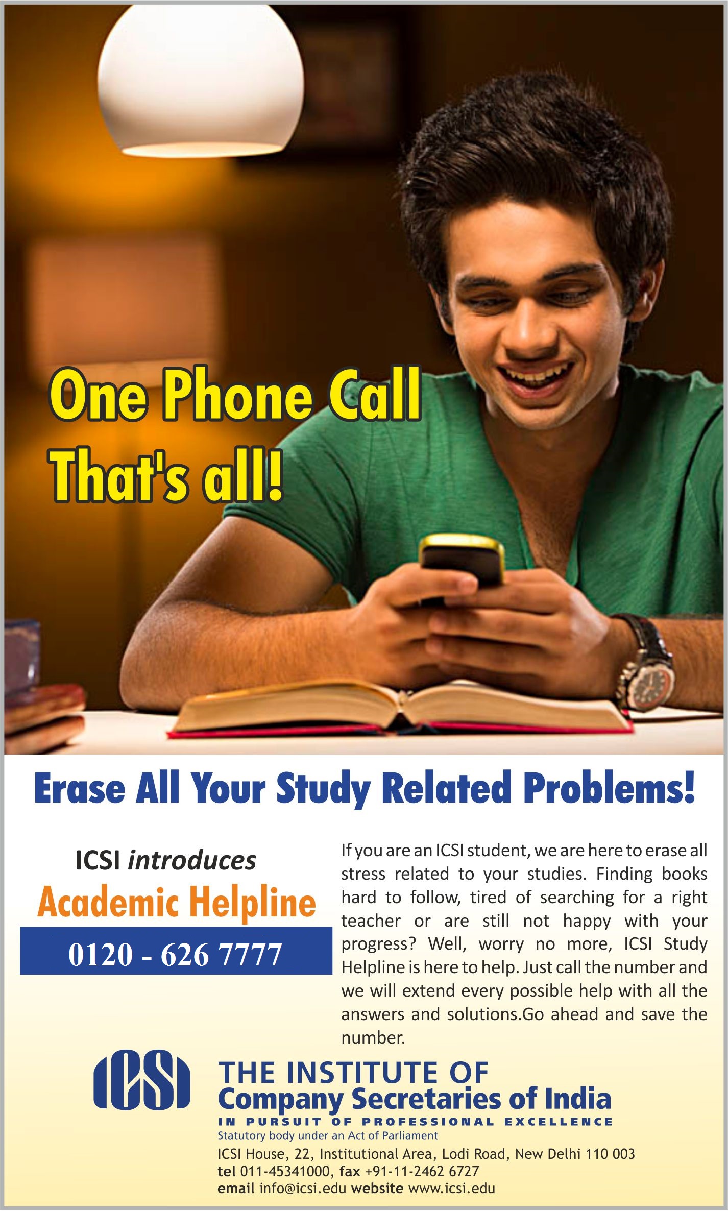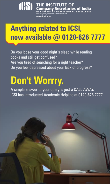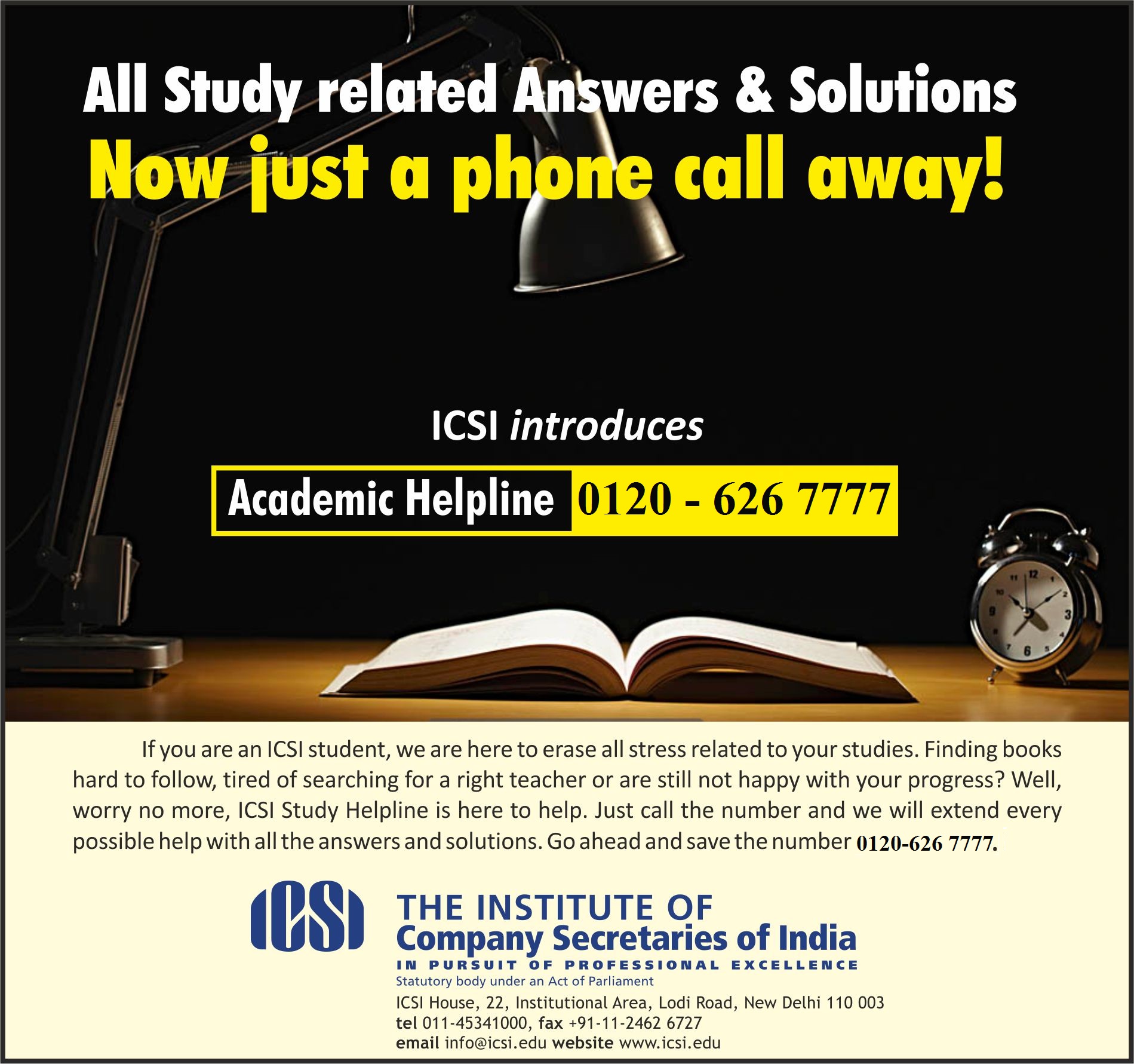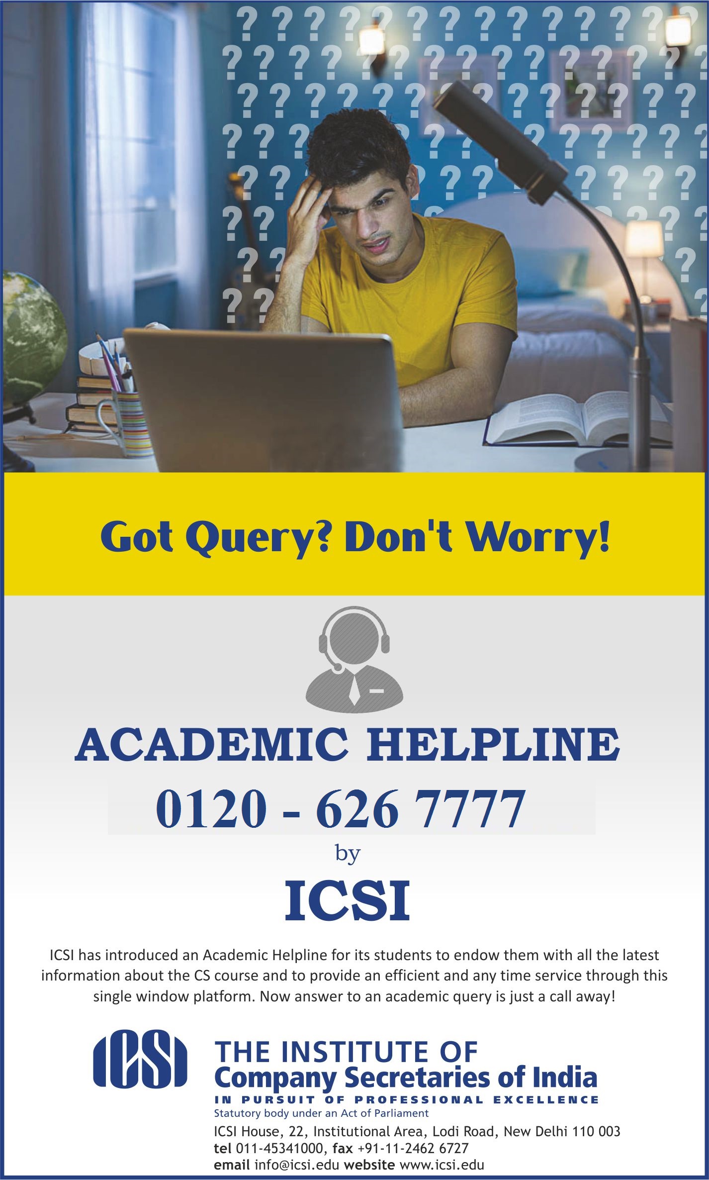We are pleased to inform that the Institute has enabled an Academic Helpline on pilot basis and the students may contact the Helpline No. 0120-626 7777 for their queries of academic nature and the available faculty across India shall be connected with you. Kindly provide your Stage and the Subject on the Helpline such that you are connected as per your needs.