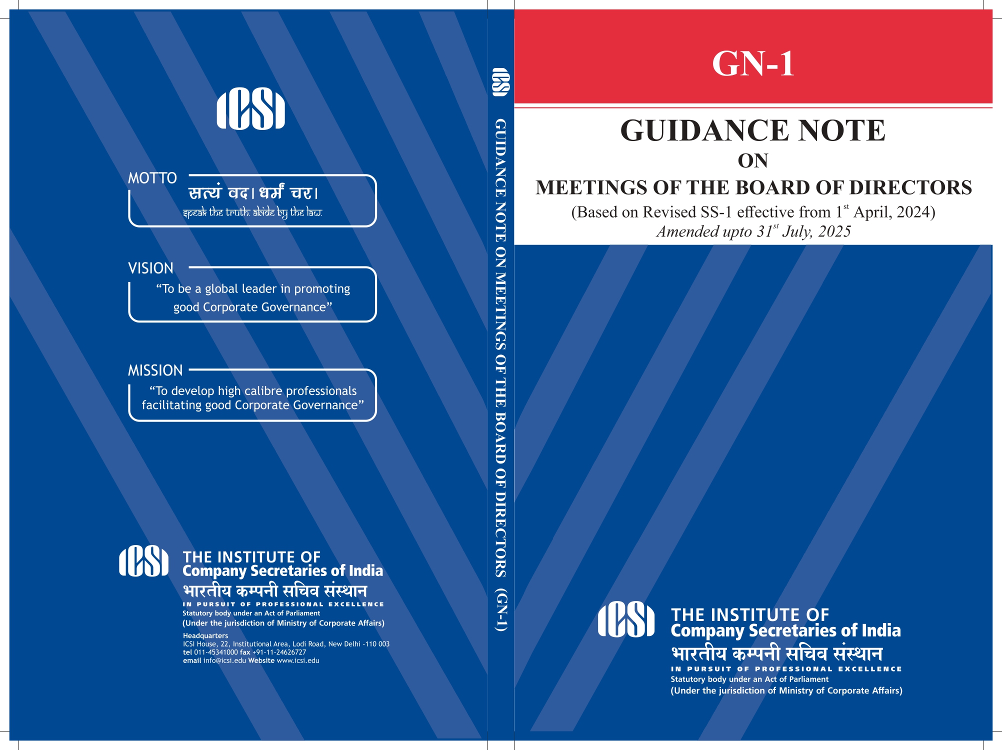 GUIDANCE NOTE ON MEETINGS OF THE BOARD OF DIRECTORS(AMENDED UPTO 31ST JULY, 2025)Preface Click here |