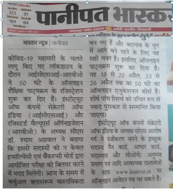 Free E-Learning facility started by the ICSI for the students due to the pandemic of Covid-19.