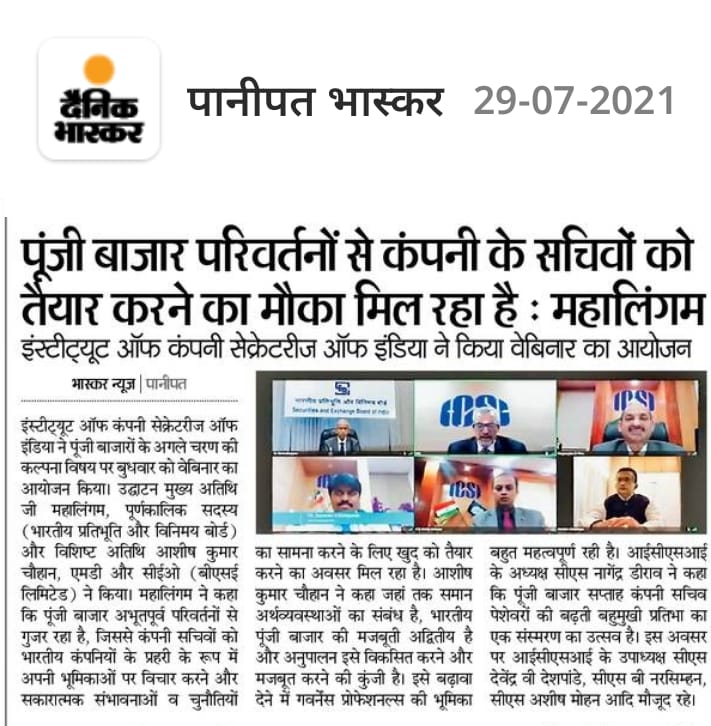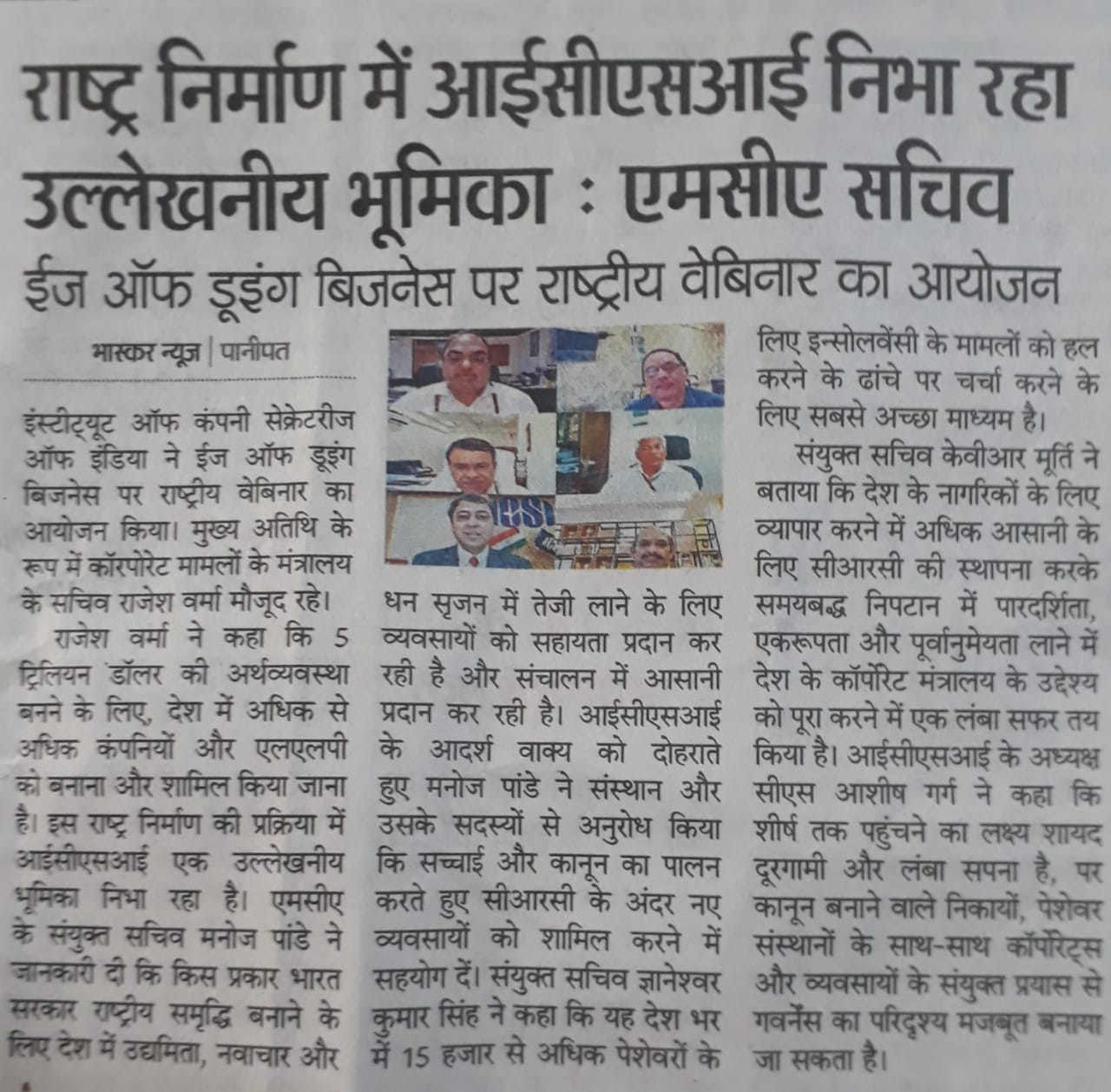 Webinar on " Ease of doing Business " conducted by ICSI.