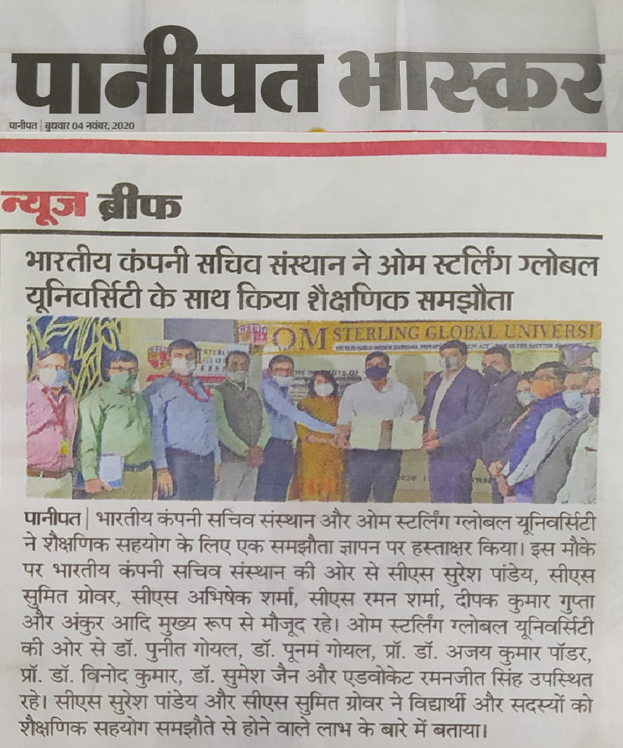 MOU with " OM STERLING GLOBAL UNIVERSITY " on 2nd November, 2020