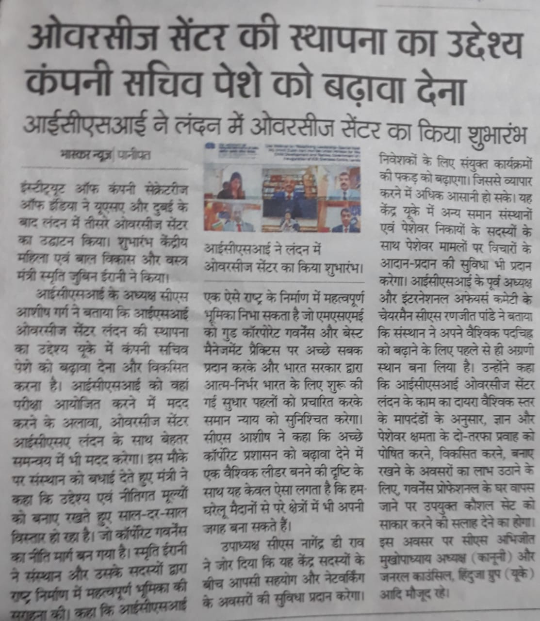ICSI inaugurated the Overseas center in United Kingdom- London.