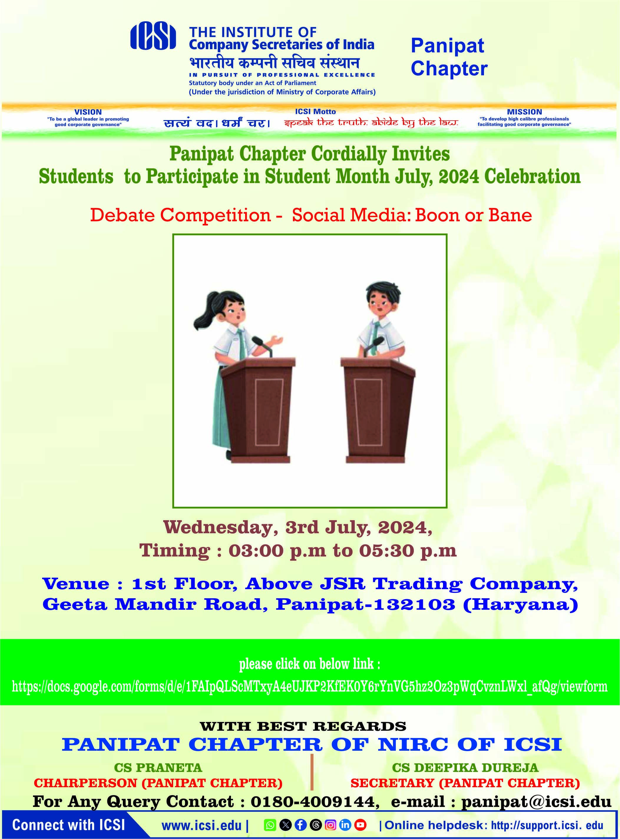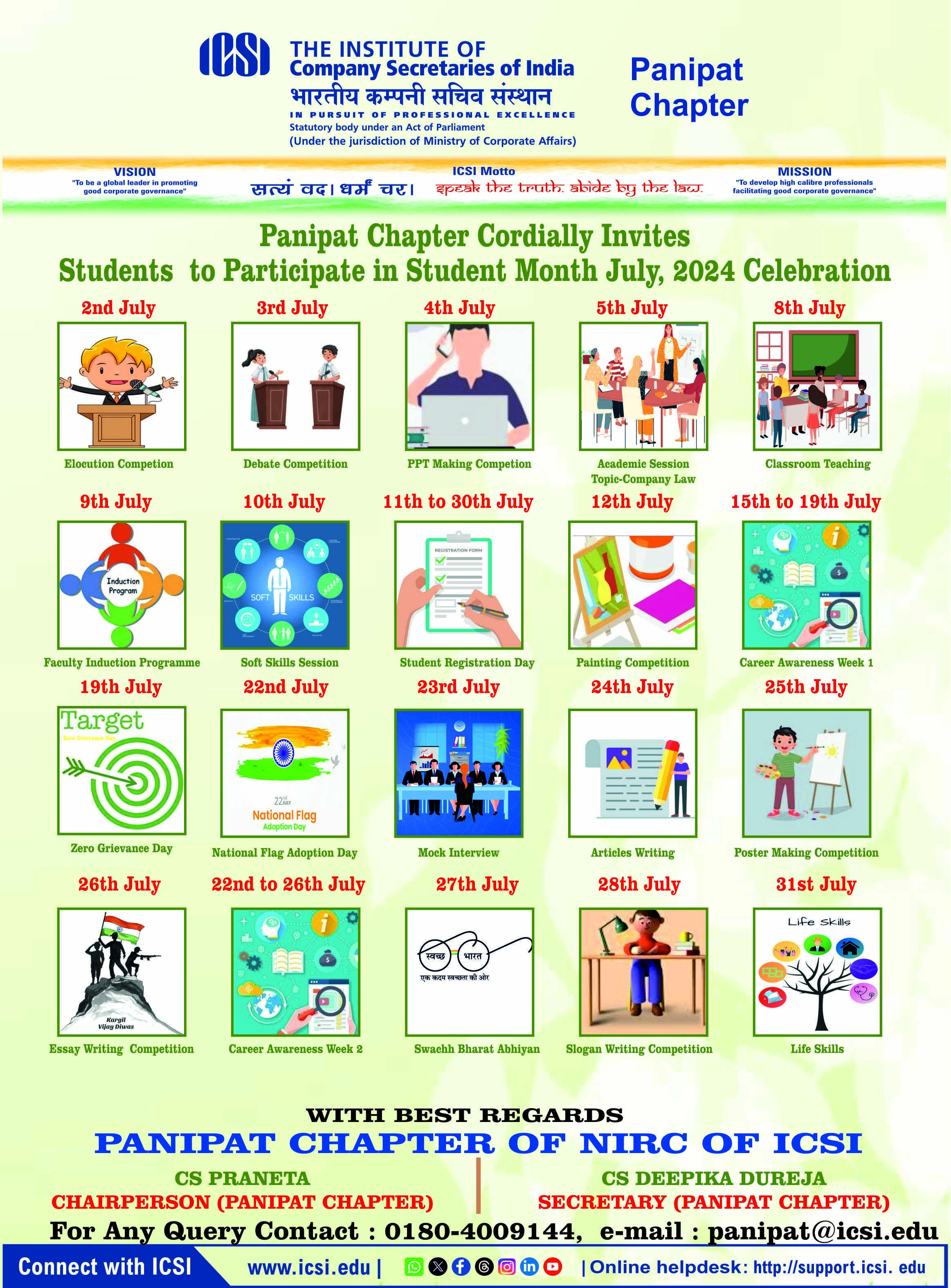 - ANNOUNCEMENT OF STUDENT MONTH 2024 BY PANIPAT CHAPTER