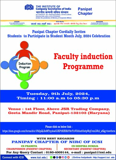 - Faculty Induction Programme by Panipat Chapter on 09 07 2024