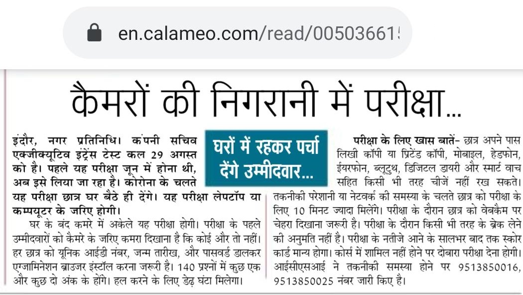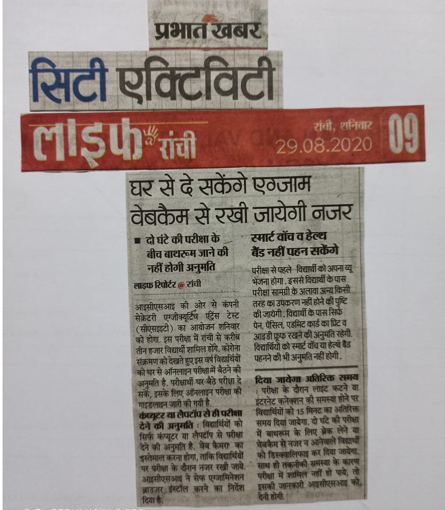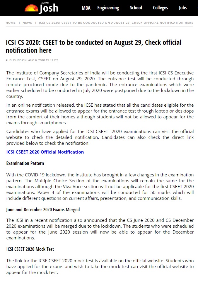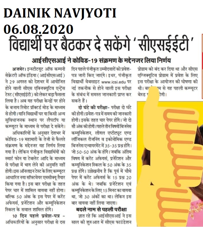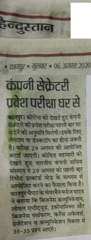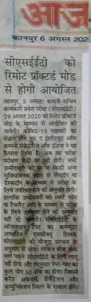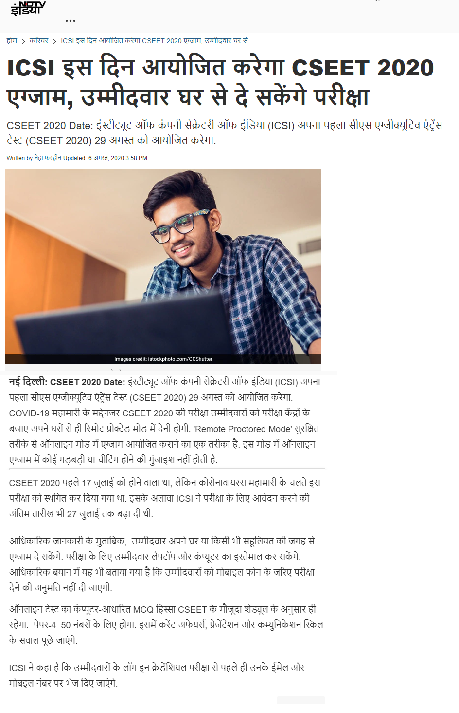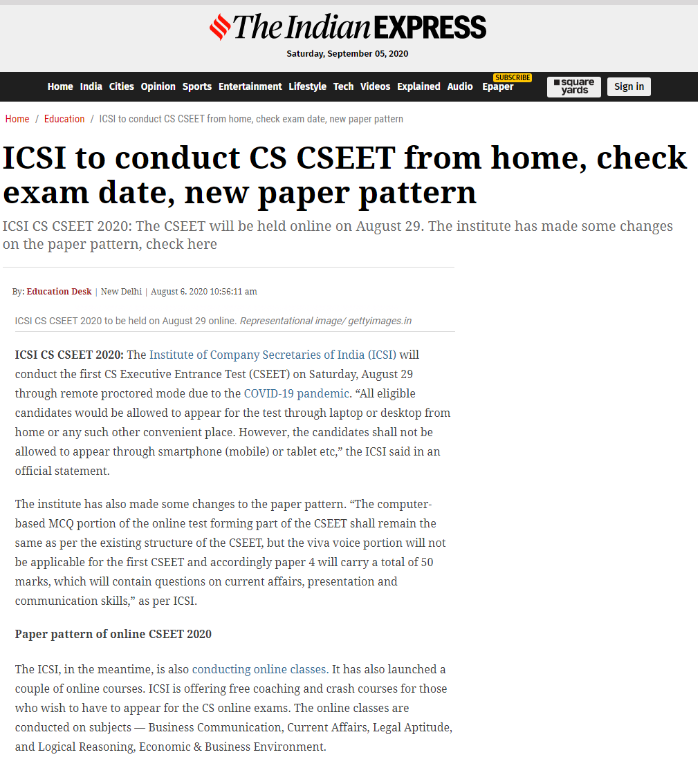 Company Secretary Executive Entrance Test (CSEET) to be conducted on 29th August, 2020 through Remote Proctored Mode