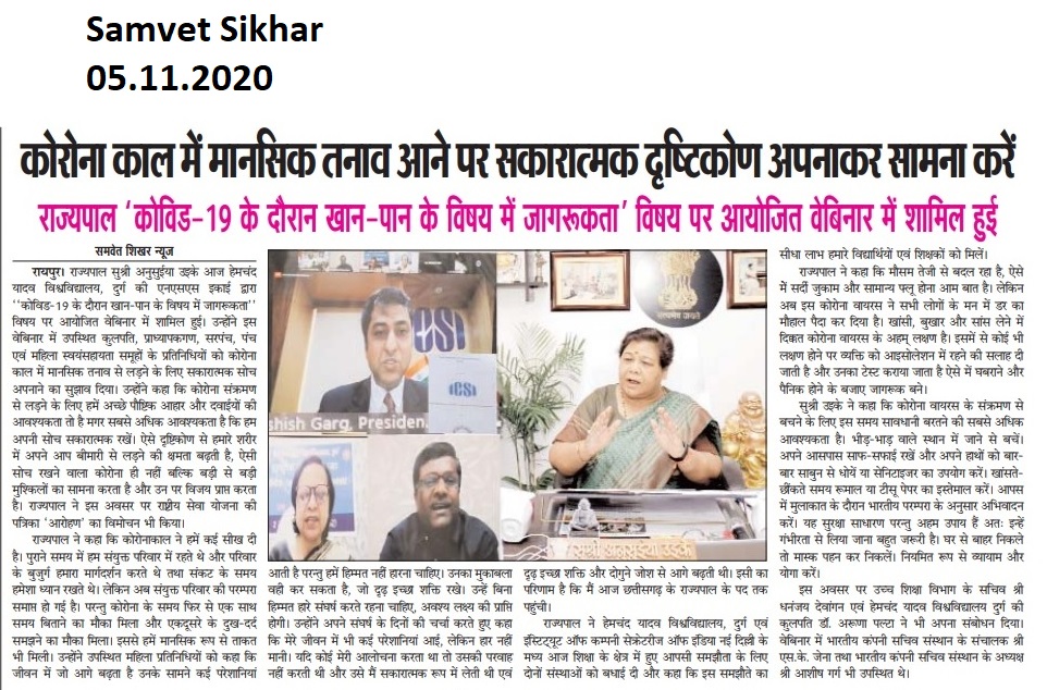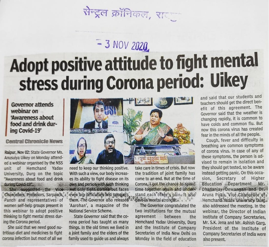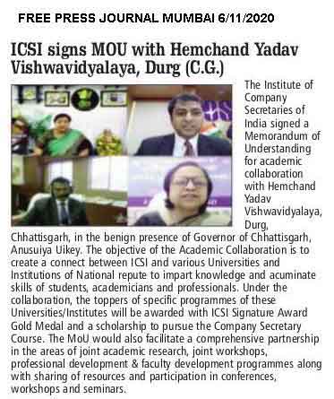 ICSI signs MOU with Hemchand Yadav Vishwavidyalaya, Durg (C.G.)
