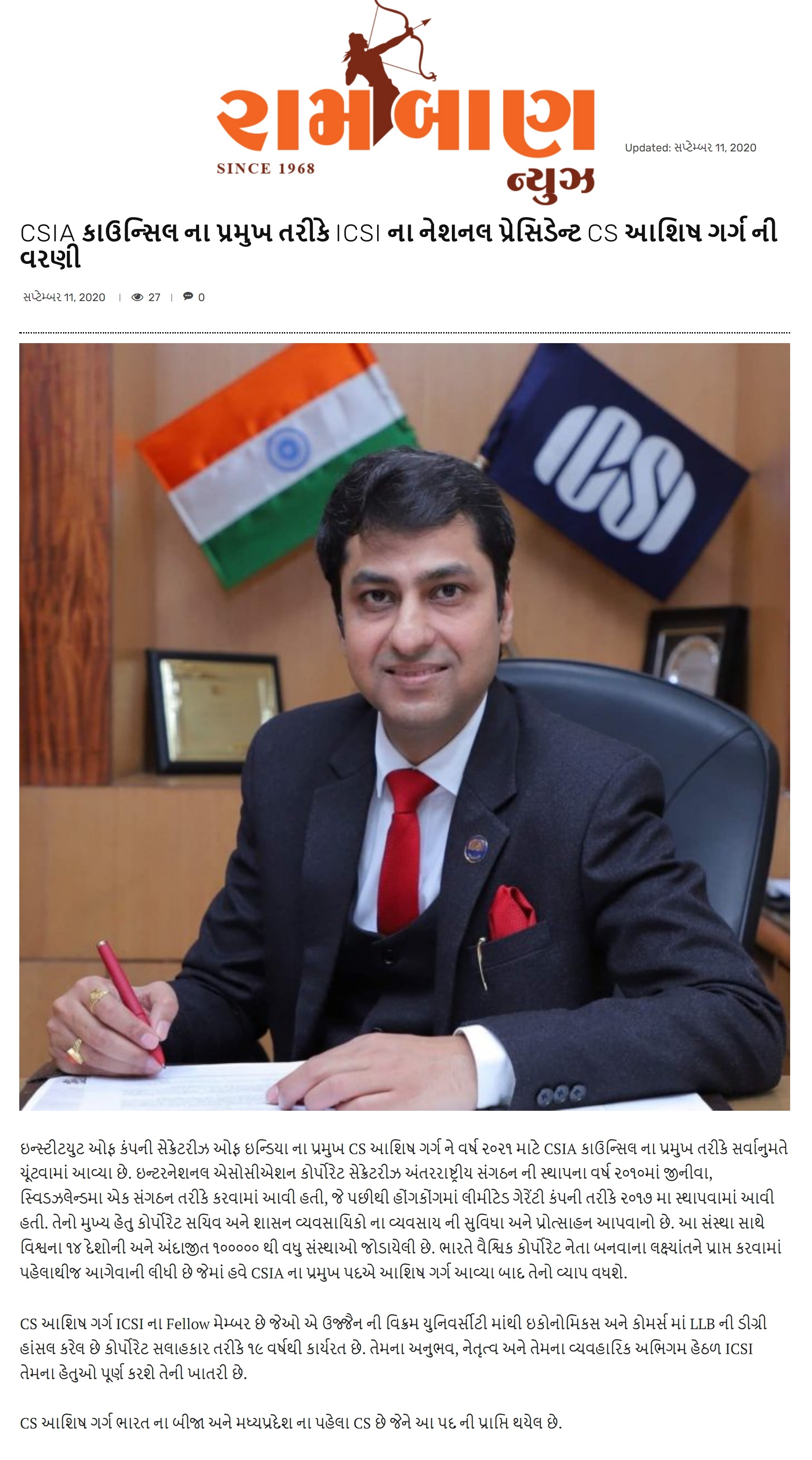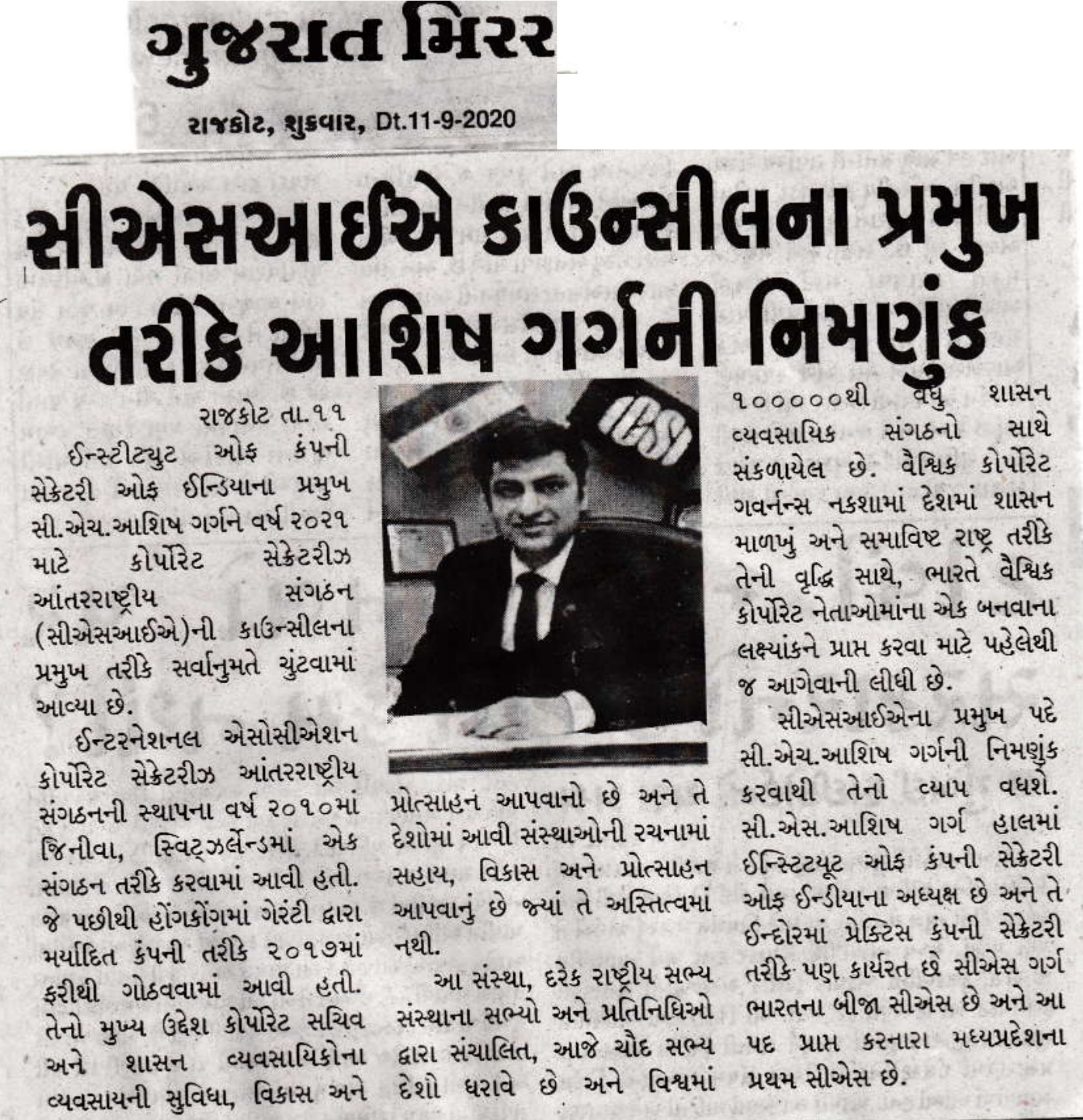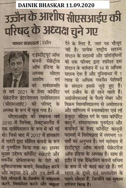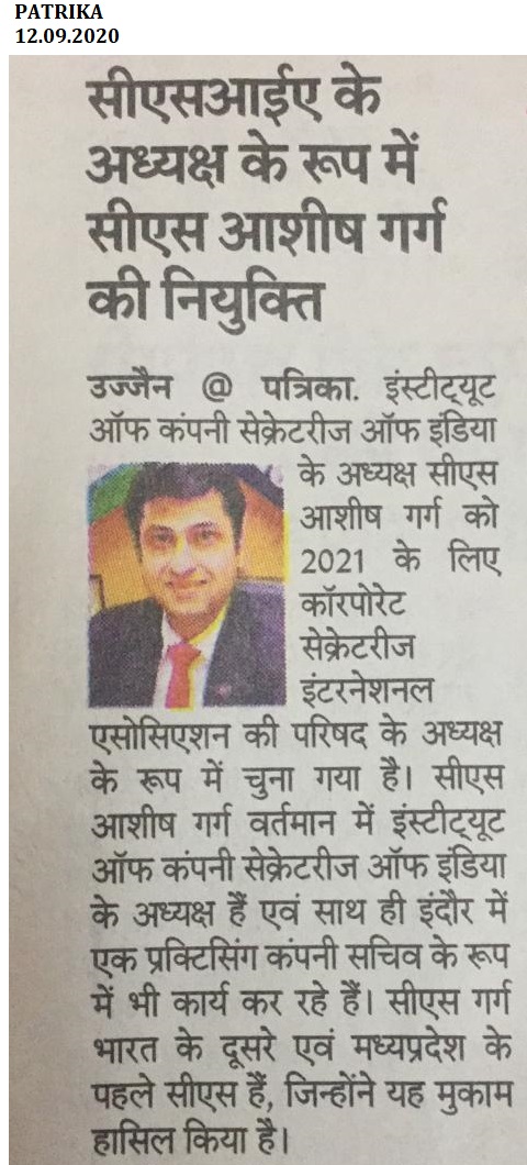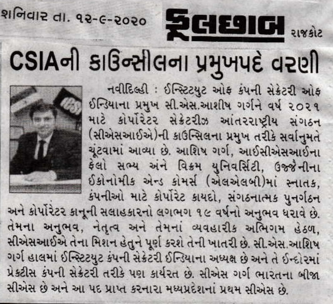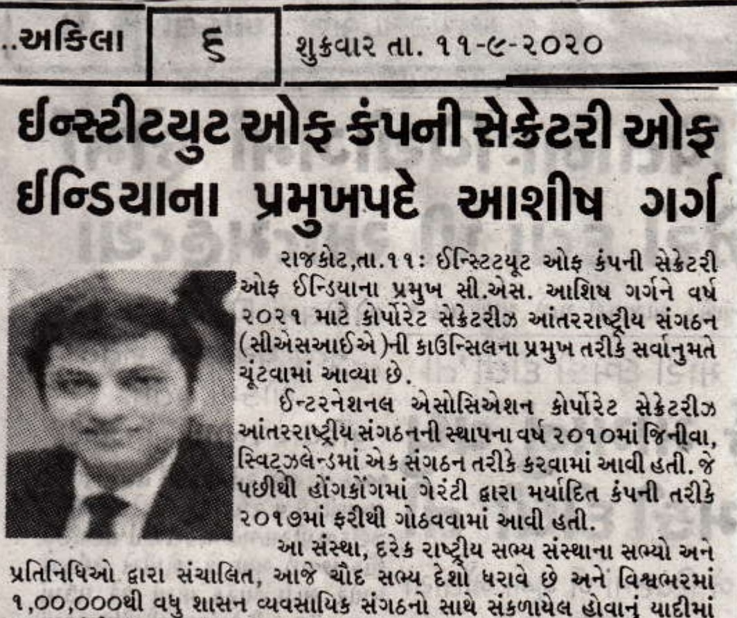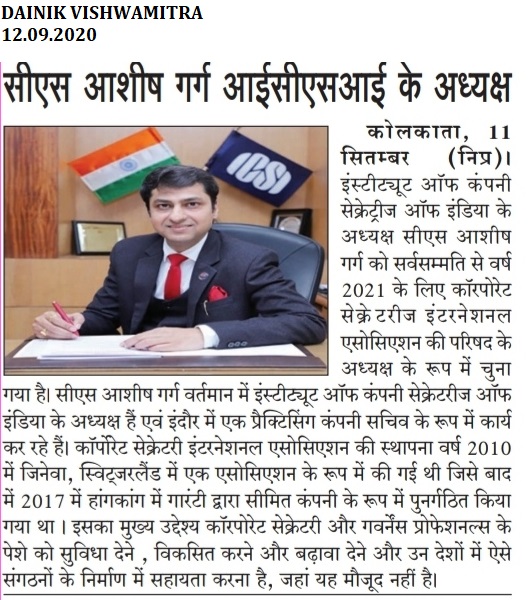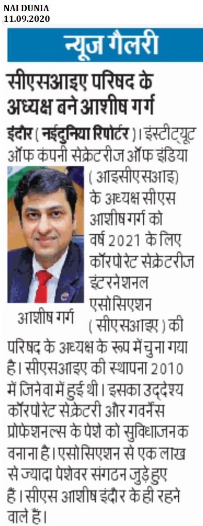 CS Ashish Garg becomes Corporate Secretaries International Association (CSIA) President for the year 2021