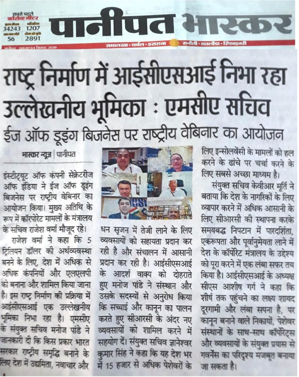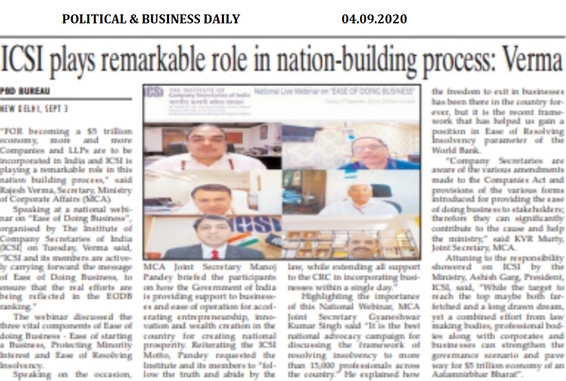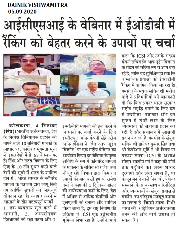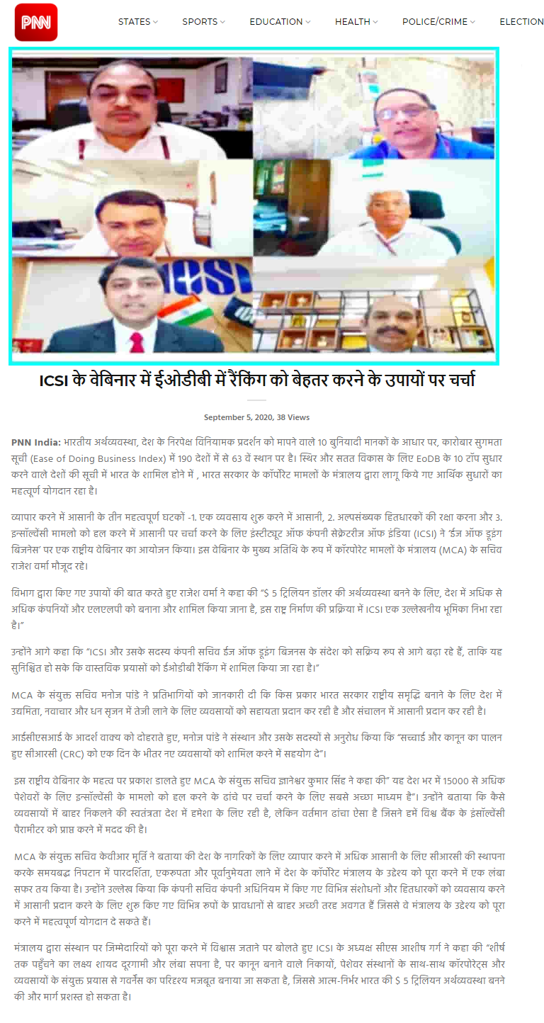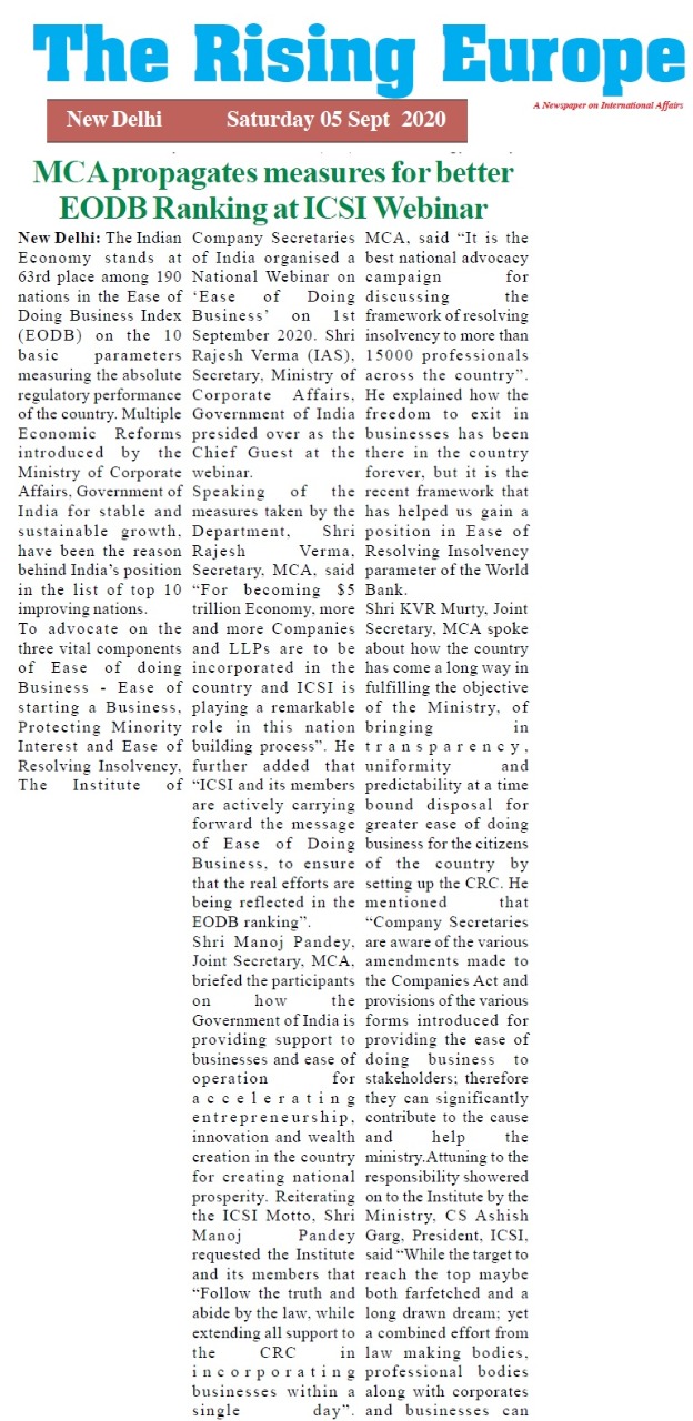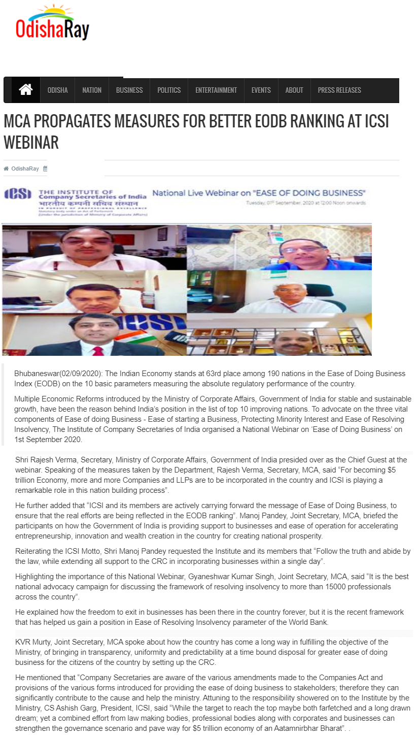 MCA propagates measures for better EODB Ranking at ICSI Webinar