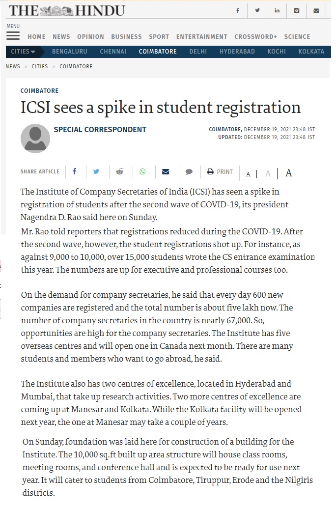 Recognitions Secured for Company Secretaries