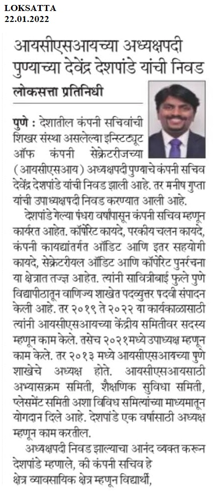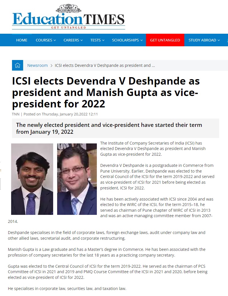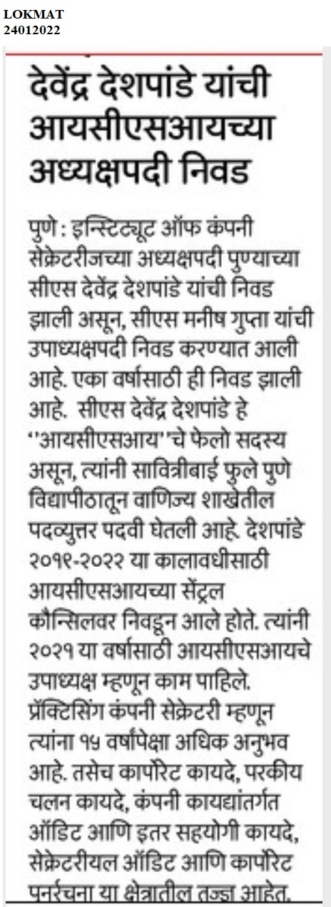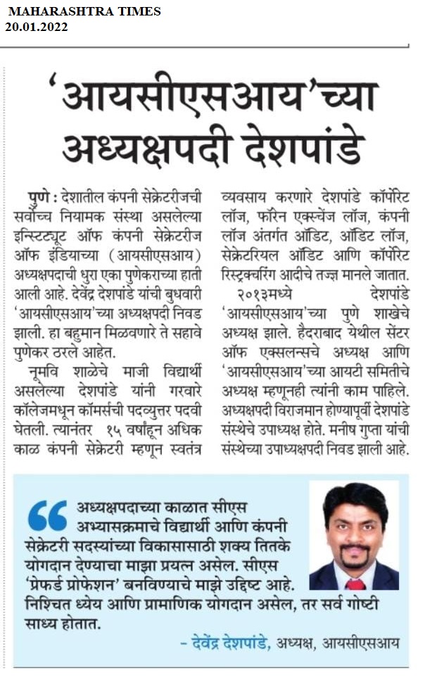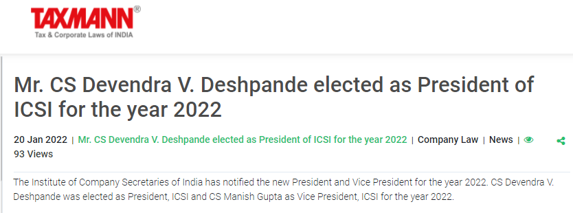 Recognitions Secured for Company Secretaries