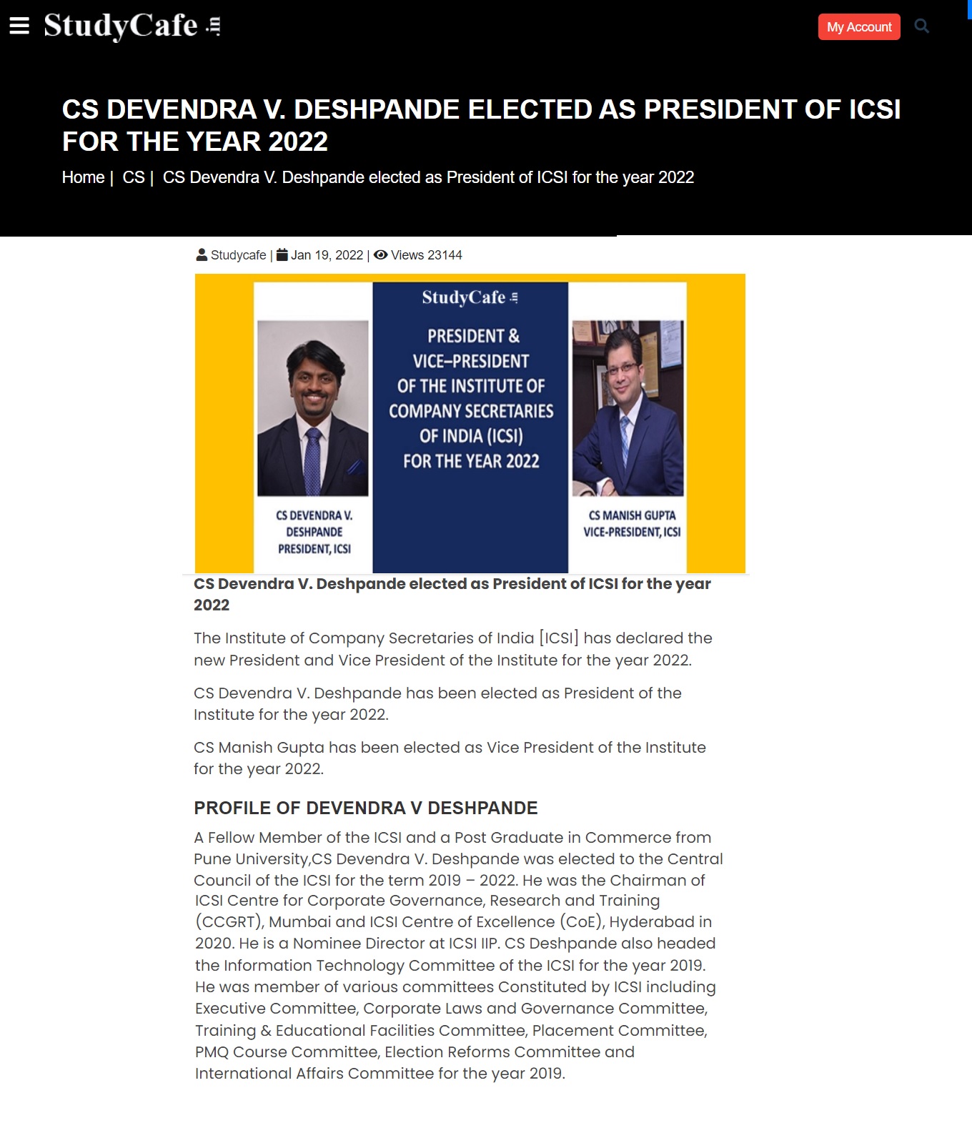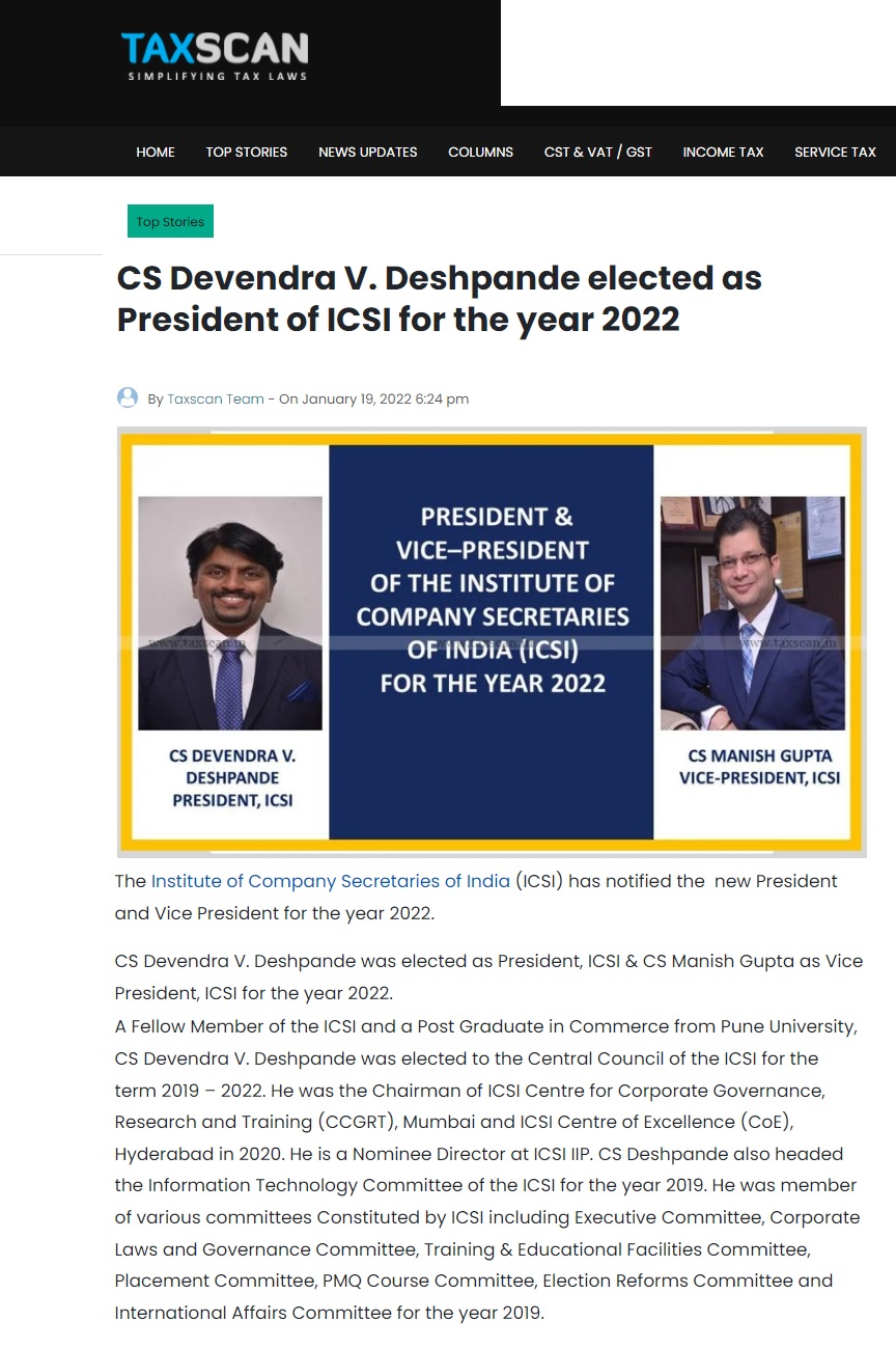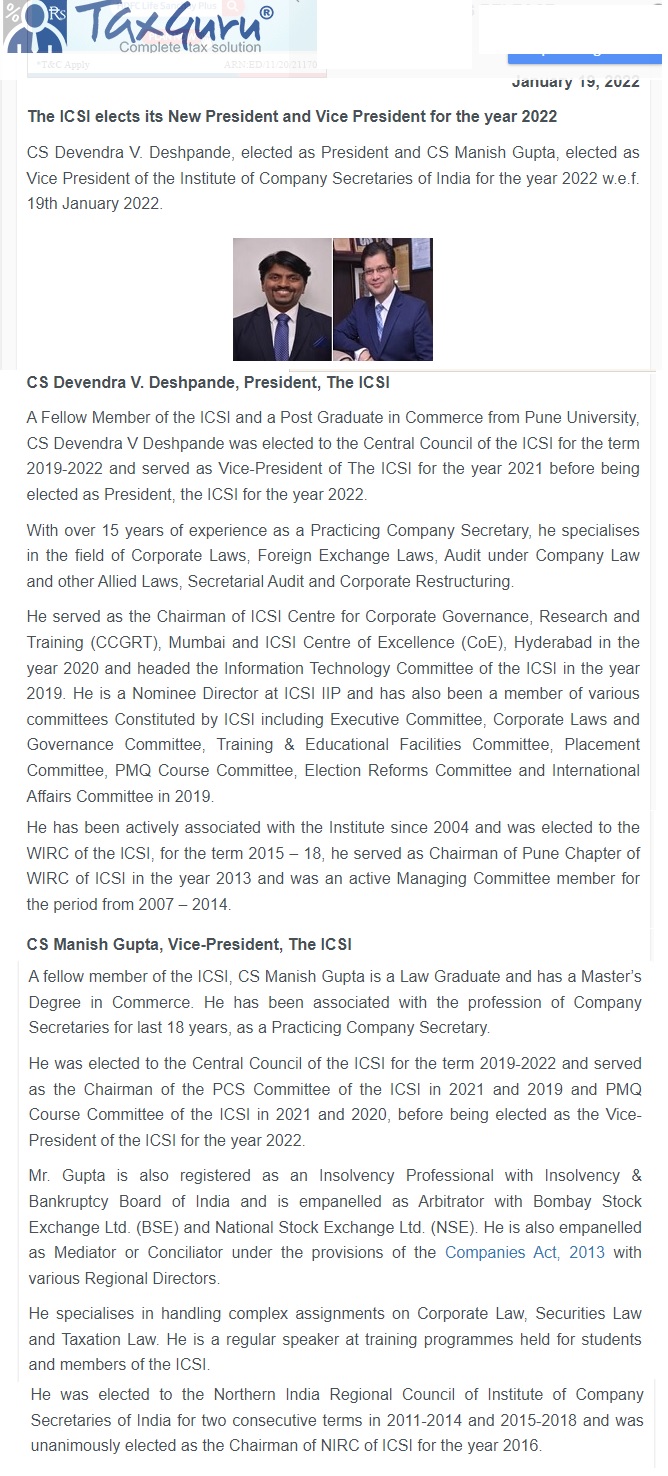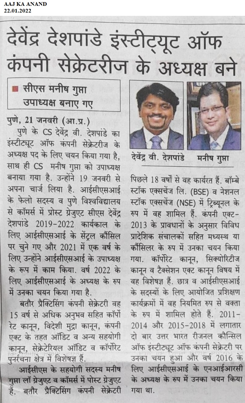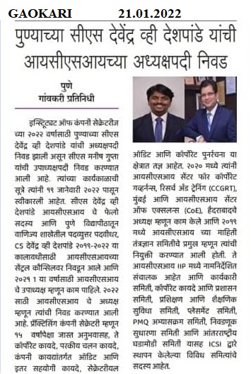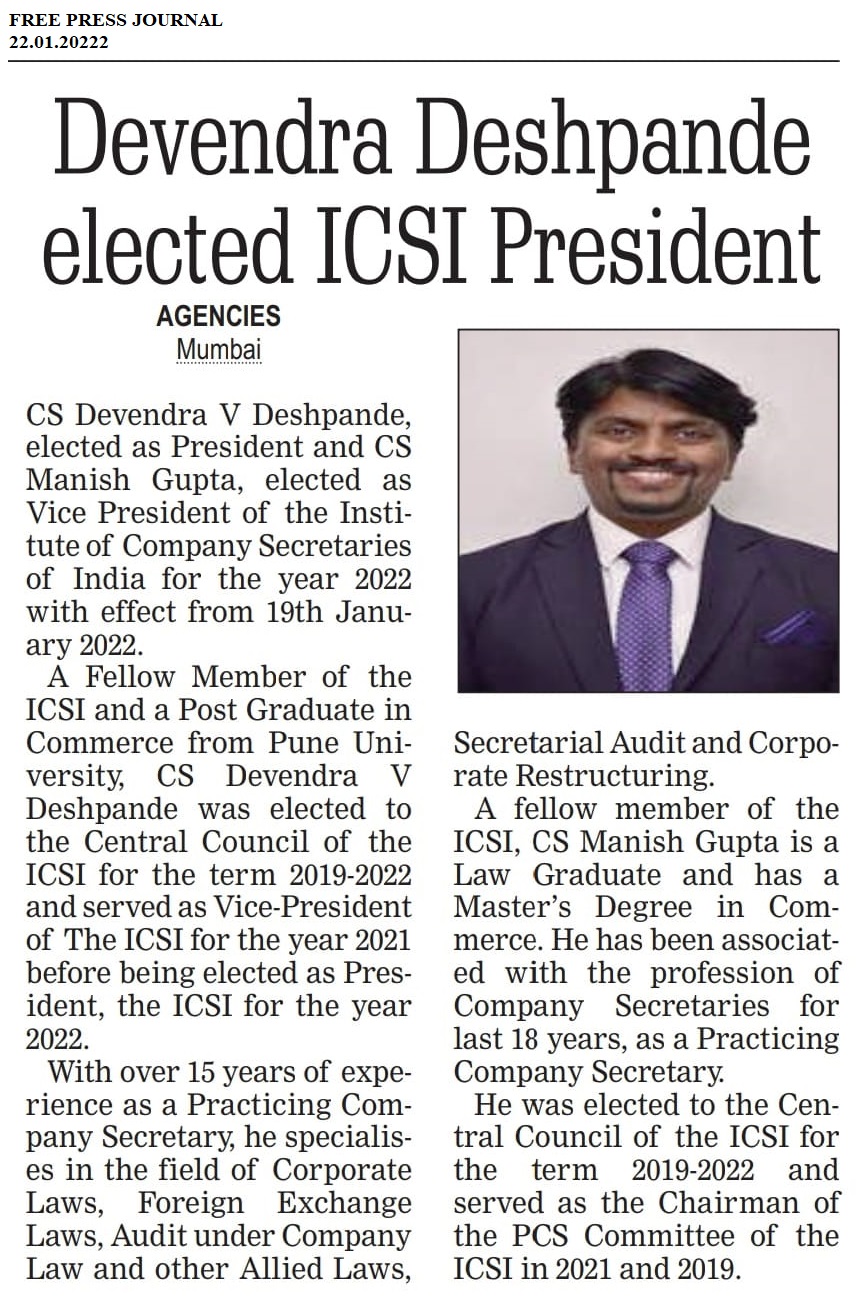 President and Vice President of the ICSI for 2022