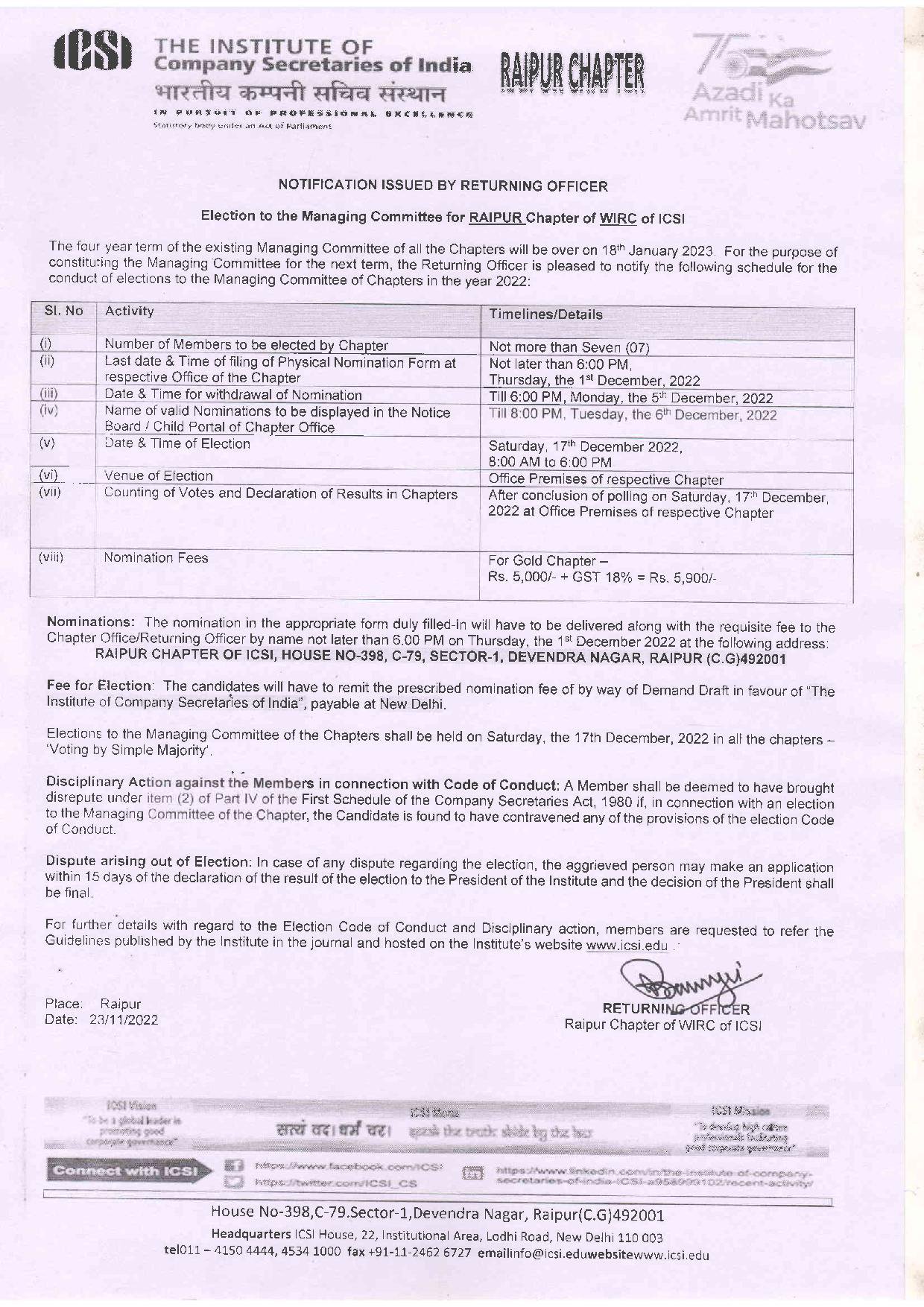 Half Day Seminar by Raipur Chapter of ICSI on 16th March, 2024