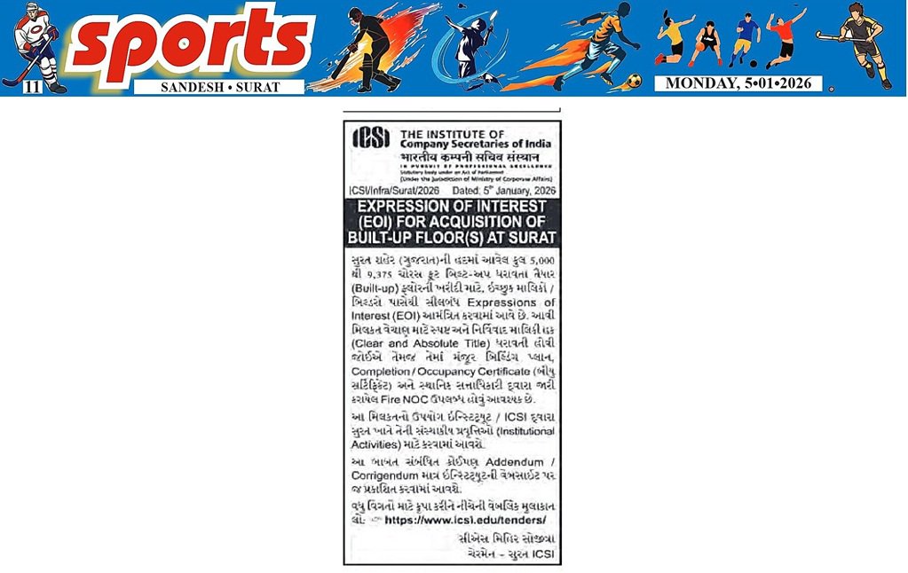 Tender Documents :https://www.icsi.edu/media/webmodules/tender/EOI_SURAT_dated_05.01.2025.pdf